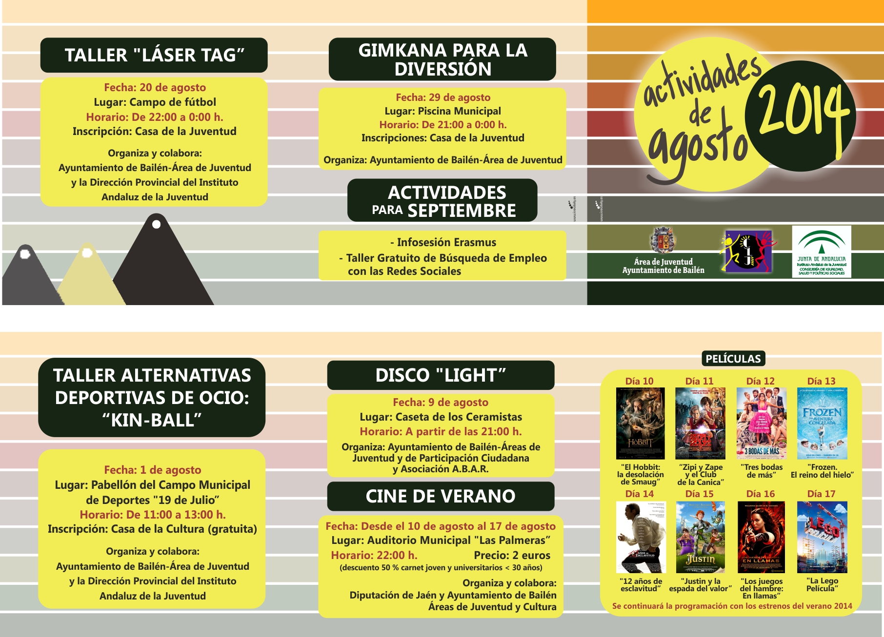 Si desea conocer el programa de actividades organizadas para agosto 2014 en Bailén, pinche aquí.