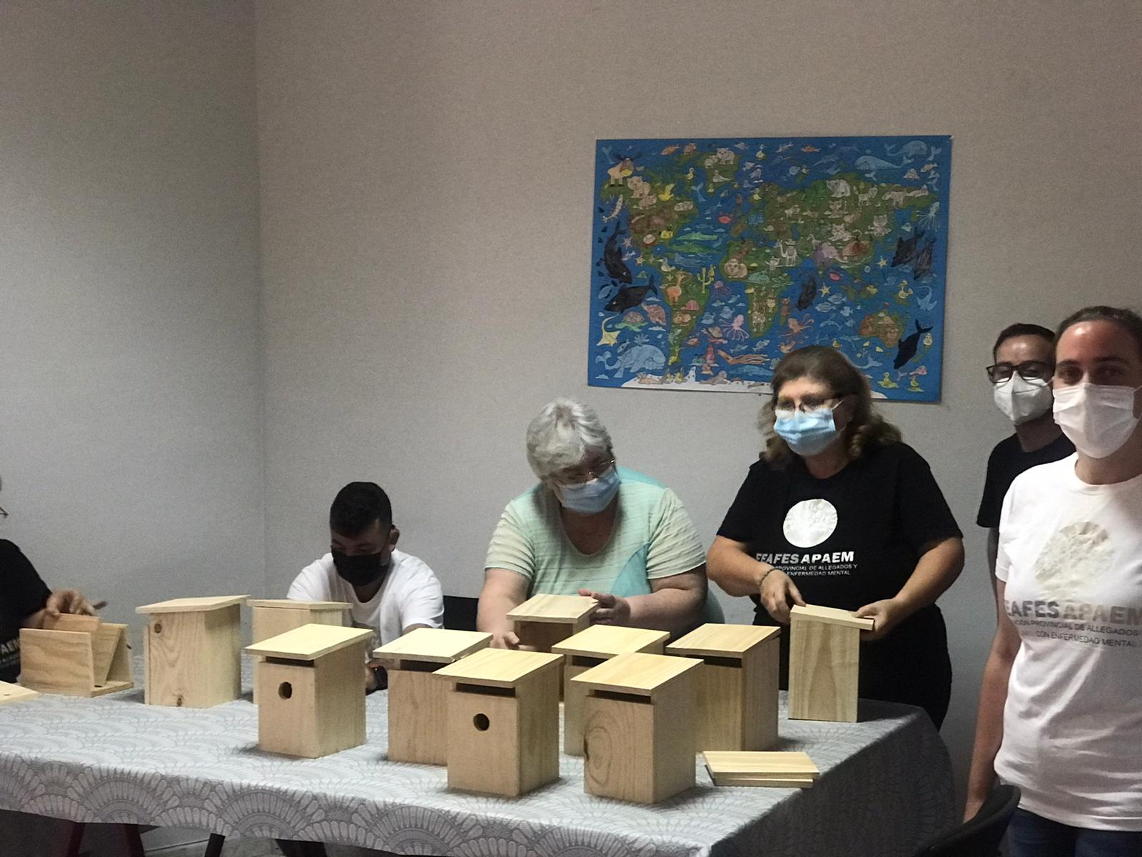 La Concejalía de Medio Ambiente, junto con la asociación de Voluntarios de la Fundación La Caixa, han puesto en marcha un proyecto para que los integrantes de Feafes-Apaem Bailén construyan casas-nido que se instalarán posteriormente en el Monte Burguillos.