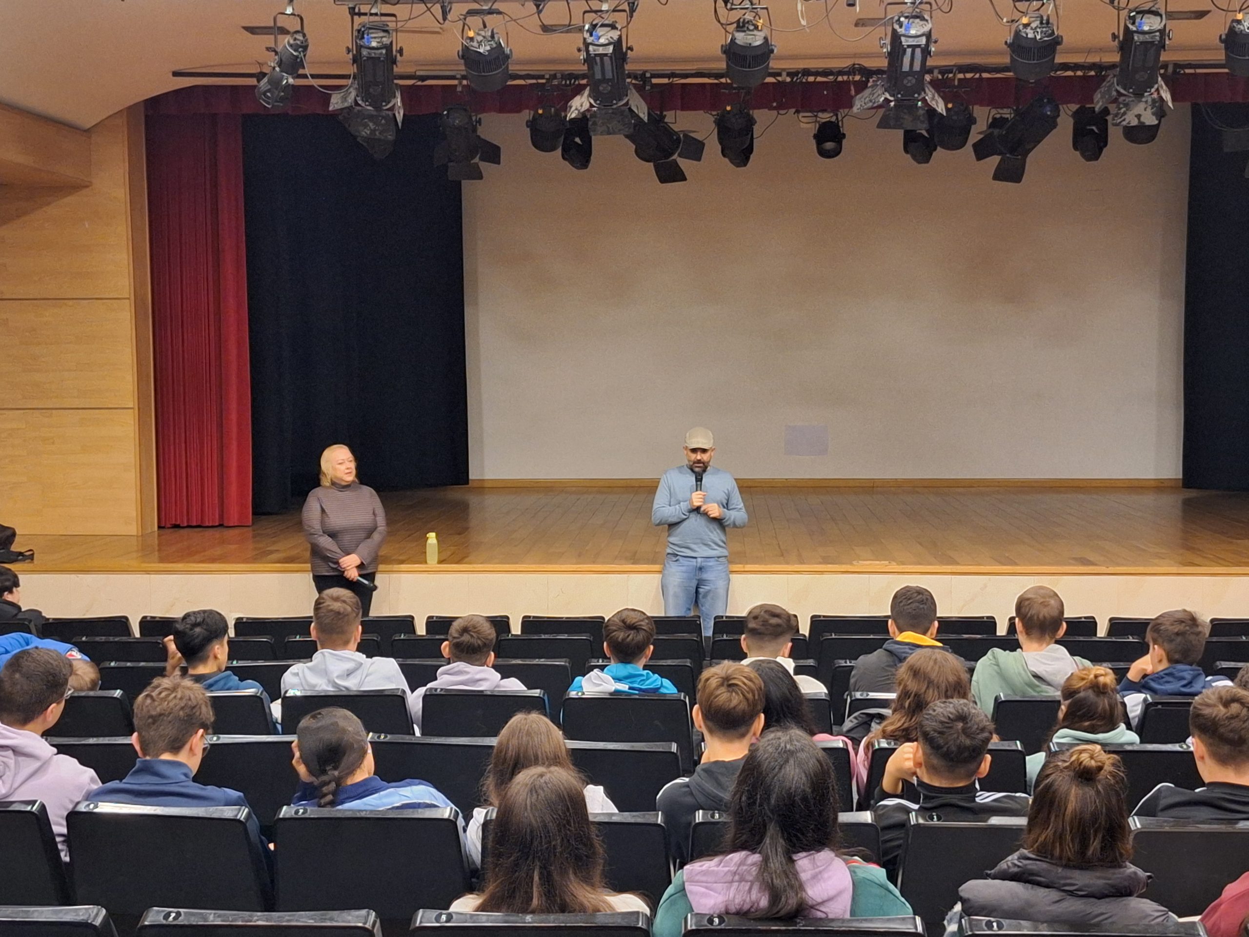 Los alumnos han visualizado el cortometraje ‘La Cajera’, de Amada Santos; un trabajo que cuenta en su reparto con el bailenense Pedro Lendínez y basado en un caso real, concretamente la historia que hay detrás de la primera sentencia condenatoria por abuso sexual en Andalucía, mostrando el mapa completo de lo que pasa en la sociedad cuando ocurre un episodio de violencia hacia las mujeres. Tras su proyección, se ha llevado a cabo una charla coloquio, dirigida por el propio Pedro Lendínez, en la que los alumnos han podido expresar sus opiniones, testimonios y experiencias.