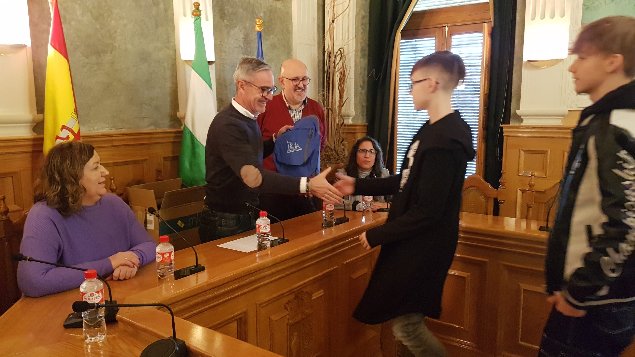 Junto con el Alcalde, ha estado Jorge Royo, director del IES Hermanos Medina Rivilla, al que pertenecen los alumnos que han acogido a sus compañeros polacos y la directora del centro educativo de la localidad de Plock, Malgorzata Pawlak, quien ha agradecido al Alcalde el recibimiento realizado.