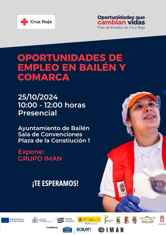 Organizado por Cruz Roja, con la colaboración de las Concejalías de Bienestar Social y la de Formación y Empleo, gestionadas por Alfonsa García y María Torres, respectivamente, y otras instituciones, el próximo 25 de octubre, de 10.00 a 12.00 horas, se celebrará en la Sala de Convenciones del Ayuntamiento de Bailén un taller de oportunidades de empleo para el municipio y la comarca.