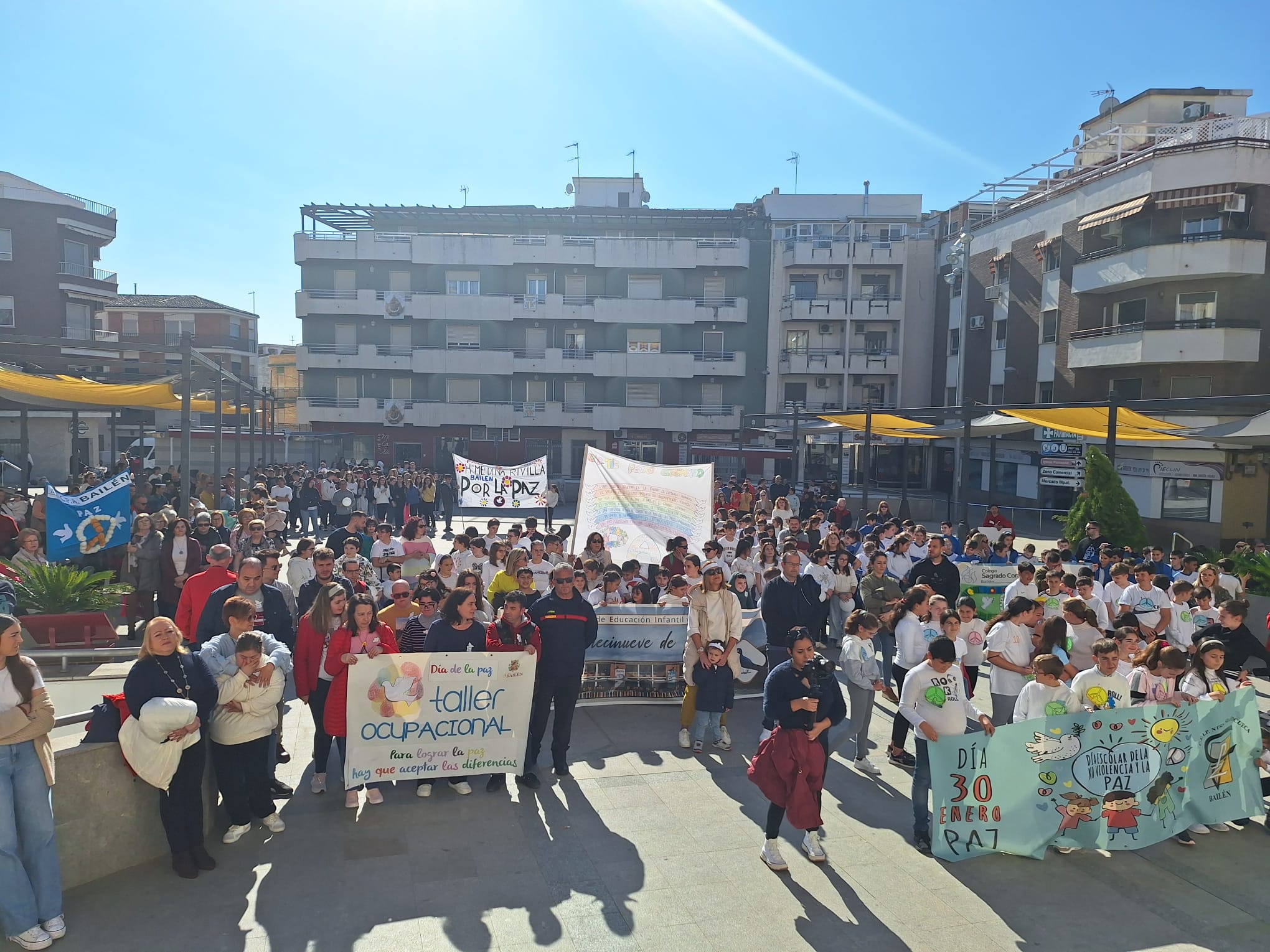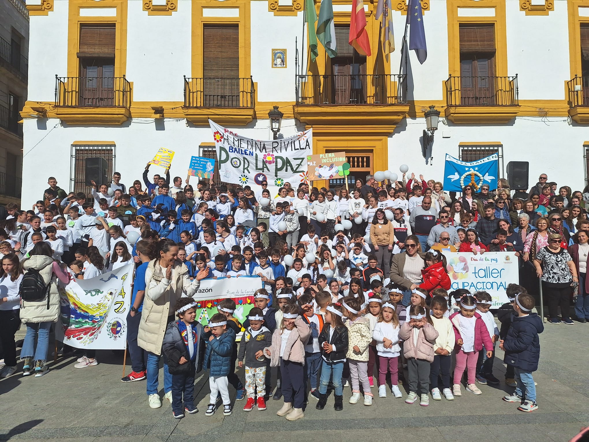 Esta mañana se ha celebrado en Bailén el Día Escolar de la No Violencia y la Paz que se conmemora cada 30 de enero, con una marcha en la que han participado todos los centros escolares de la ciudad, se ha iniciado a las 12:30 horas en el Paseo de las Palmeras y tras recorrer la céntricas calles ha finalizado en la Plaza de la Constitución donde se han leído varios manifiestos por parte de un representante de cada centro y del resto de colectivos participantes, cerrando el acto el Alcalde de Bailén, Luis Mariano Camacho junto a la concejal de Educación, Maria Teresa Risueño varios miembros de la Corporación Municipal.
