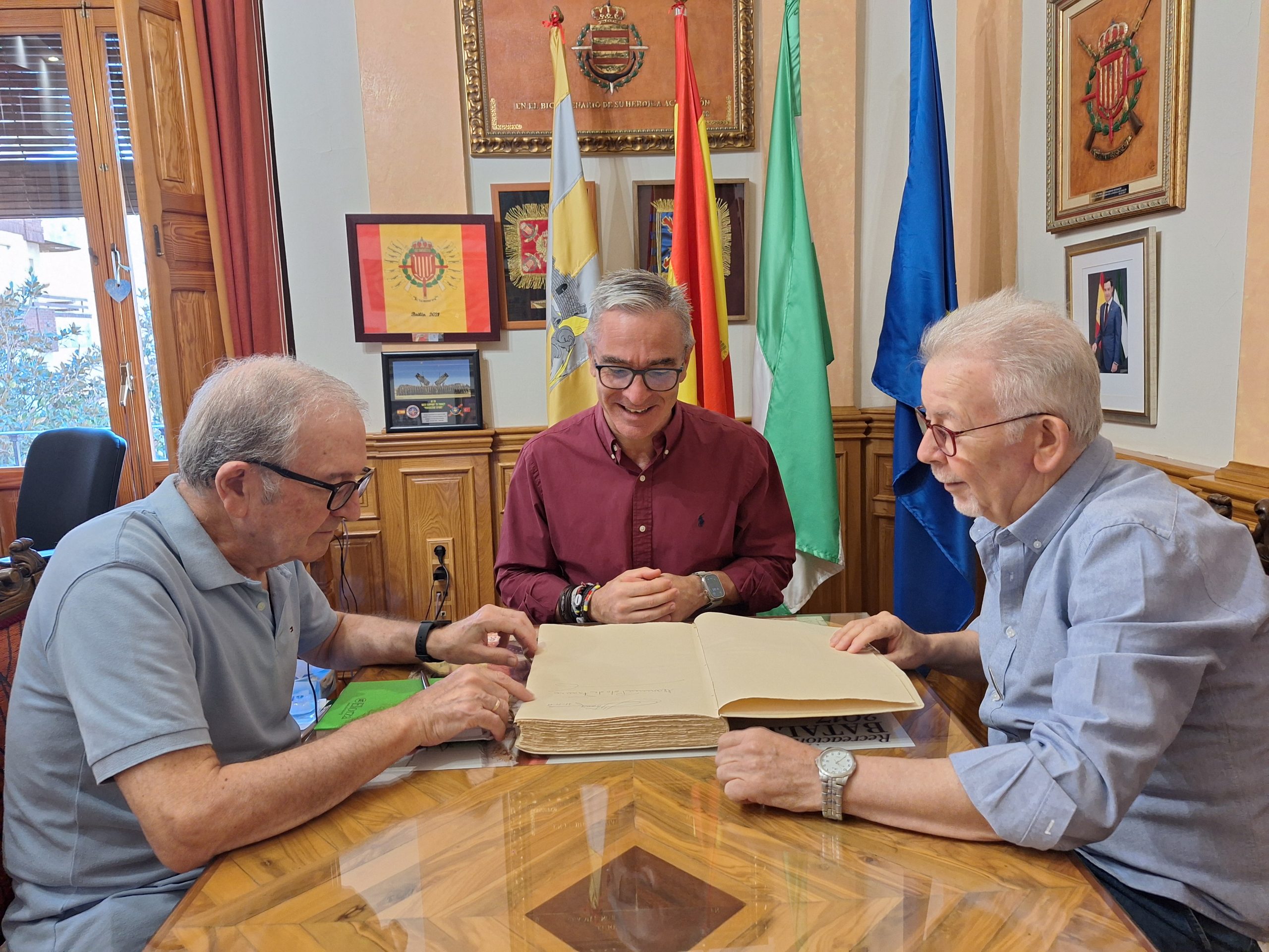 El alcalde de Bailén, Luis Mariano Camacho, ha recibido en la mañana de hoy a Bartolomé Serrano, vicepresidente del Ateneo Literario, Artístico y Científico ‘Jesús de Haro Malpesa’, y Miguel Ángel Alonso Roa, secretario de esta misma entidad cultural de la ciudad, para formalizar la firma de una nueva donación al Ayuntamiento; concretamente, el libro de oro (firmas) del Albergue de Carretera de Bailén que, a su vez, fue donado por una persona con responsabilidad en Paradores al Ateneo.