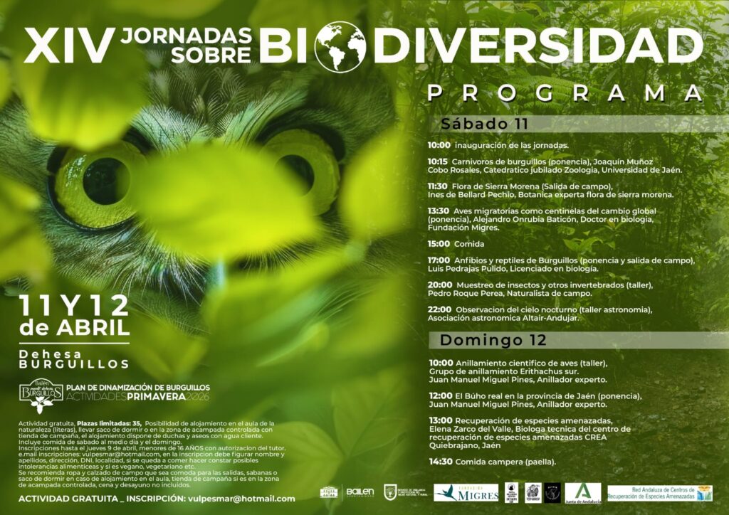 El Ayuntamiento de Bailén, a través de la Concejalía de Medio Ambiente, ha presentado las XIV Jornadas de Biodiversidad, que se celebrarán los próximos días 11 y 12 de abril en el entorno del Monte Público de Burguillos. Se trata de una actividad enmarcada en el Plan de Dinamización de Burguillos, de carácter gratuito y con plazas limitadas a un total de 35 participantes.