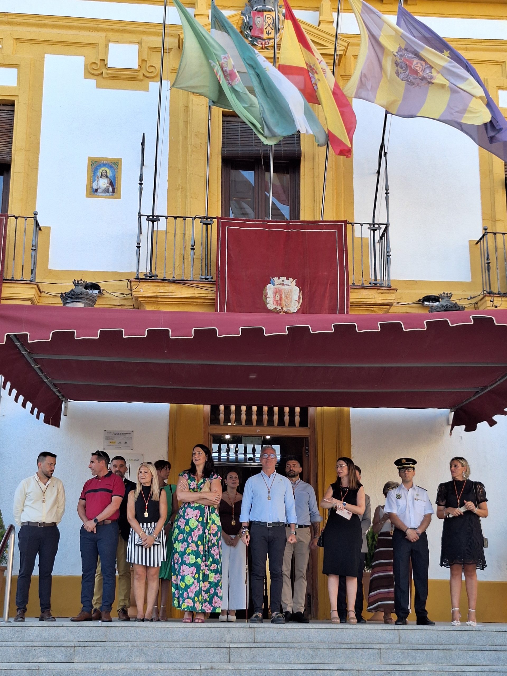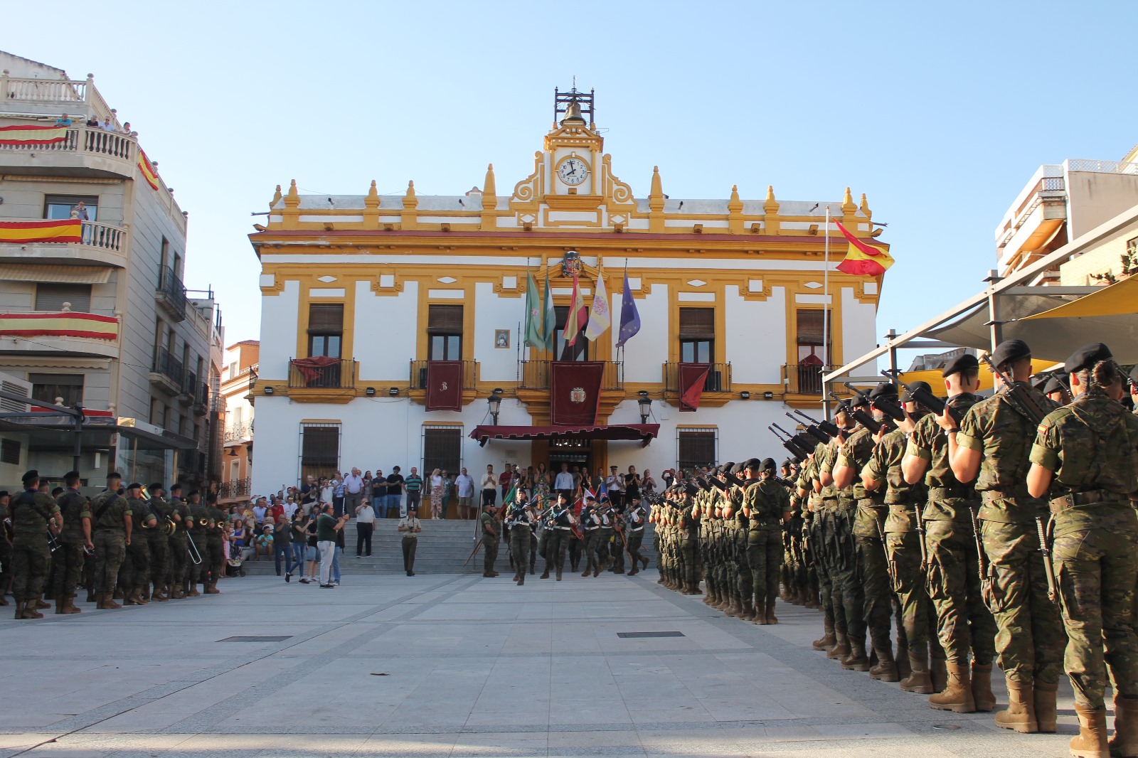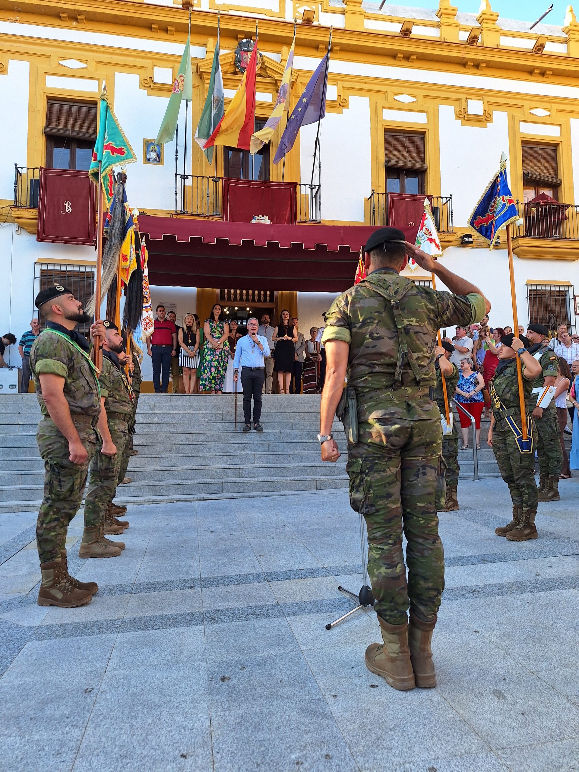 Una vez en formación en la Plaza de la Constitución, el Capitán del Escuadrón de Honores, Ricardo Madero, solicitó permiso para la entrada de la Bandera de España en el Ayuntamiento de Bailén, momento tras el cual Camacho Núñez dio la bienvenida al Escuadrón de Honores, permitiendo la entrada de la roja y gualda a las dependencias del Consistorio, acompañada en todo momento por el Teniente.