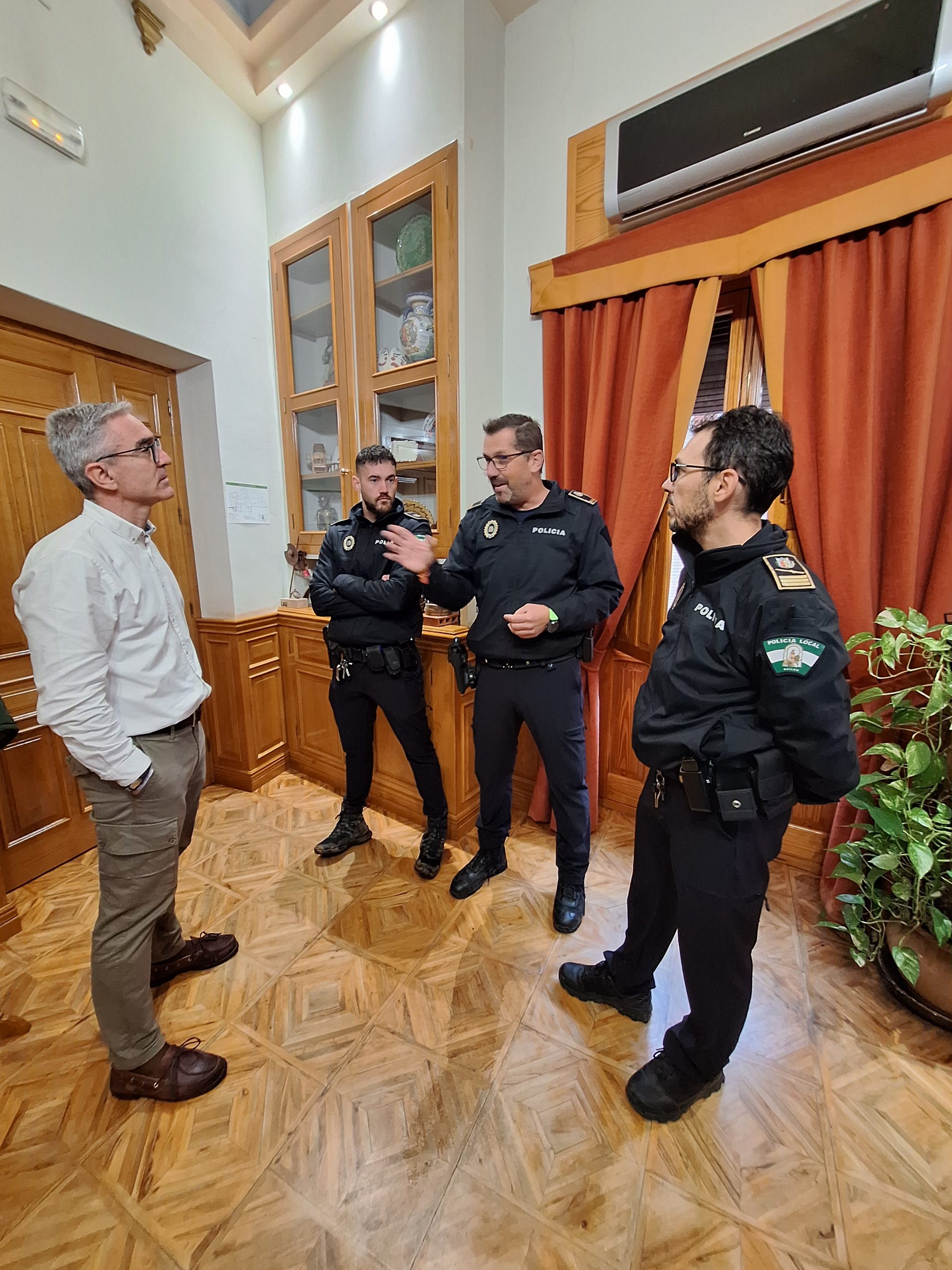 Durante la recepción, en la que han estado presentes el Inspector Jefe de la Policía Local, Juan Pedro García Serrano, así como dos de los agentes que se trasladaron hasta Valencia, concretamente Jesús Cano y Jorge Fernández, el alcalde se ha interesado por las labores realizadas por estos policías junto al tercer agente, David Hervás, y les ha trasladado su reconocimiento así como la disposición del Ayuntamiento a colaborar en cuánto necesiten para poder desempeñar sus funciones en Valencia.