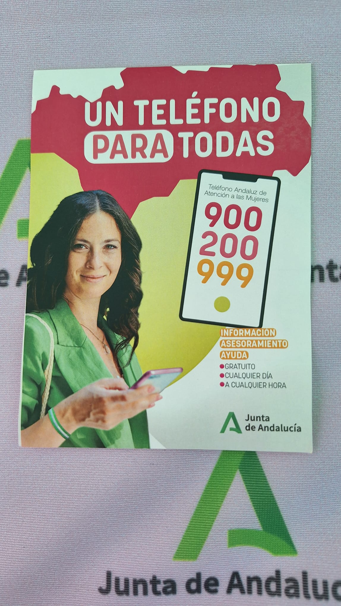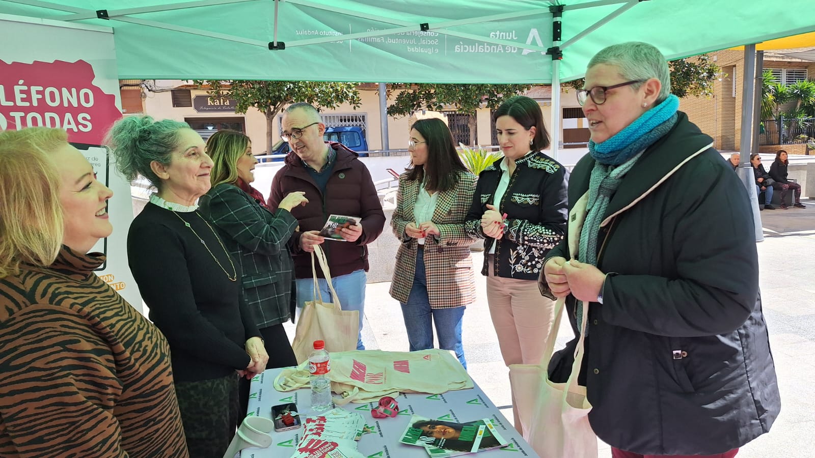 En esta ocasión el Instituto Andaluz de la Mujer (IAM) con el lema “Mujeres por bandera” ha desplegado las carpas informativas para familiarizar a la población sobre los recursos del (IAM) entre los que se encuentran el Teléfono para todas 900200999, donde se recibe información, asesoramiento y ayuda todos los días del año, es gratuito y se puede llamar a cualquier hora, sin dejar rastro en la factura.