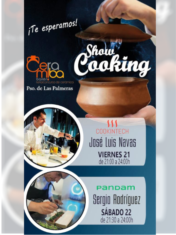 Una de ellas será la que se celebre los días 21 y 22 de octubre, cuando se realizarán sendos showcookings en el recinto del Paseo de Las Palmeras. La primera de estas muestras gastronómicas, íntimamente relacionadas con la cerámica, correrá a cargo de José Luis Navas, de Cookintech, que se desarrollará desde las 21.00. La segunda de las demostraciones previstas comenzará el sábado 22 a las 21,30 horas, en la que participarán Sergio Rodríguez, de Pandam.