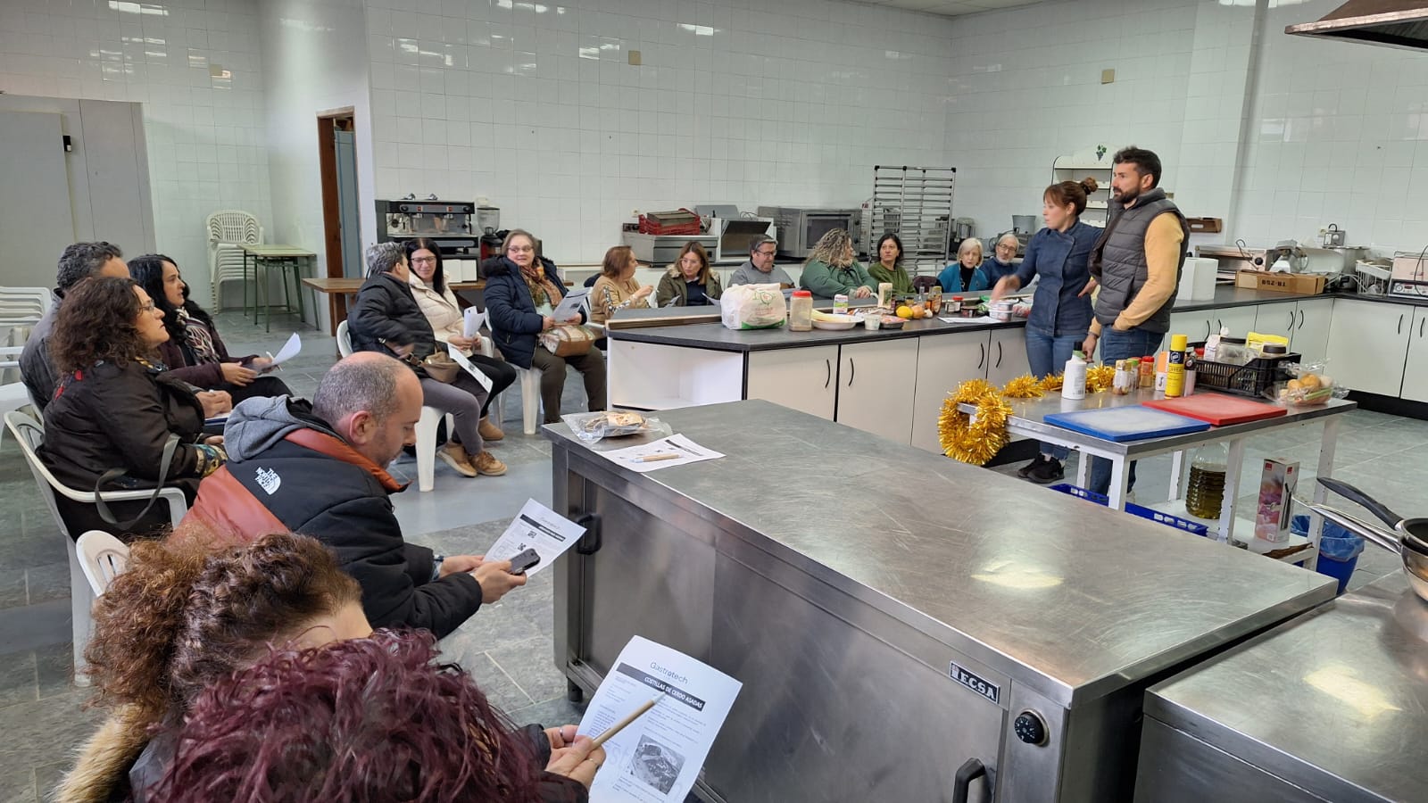 Los talleres han arrancado con una propuesta de menú para Nochebuena. Los participantes han aprendido a elaborar diversos aperitivos como hojaldre de puerros, gambas y setas; tartar de salchichón; cremoso de queso y boletus; y empanadilla de conejo y sobrasada. Como plato fuerte, costillas de cerdo asadas.
