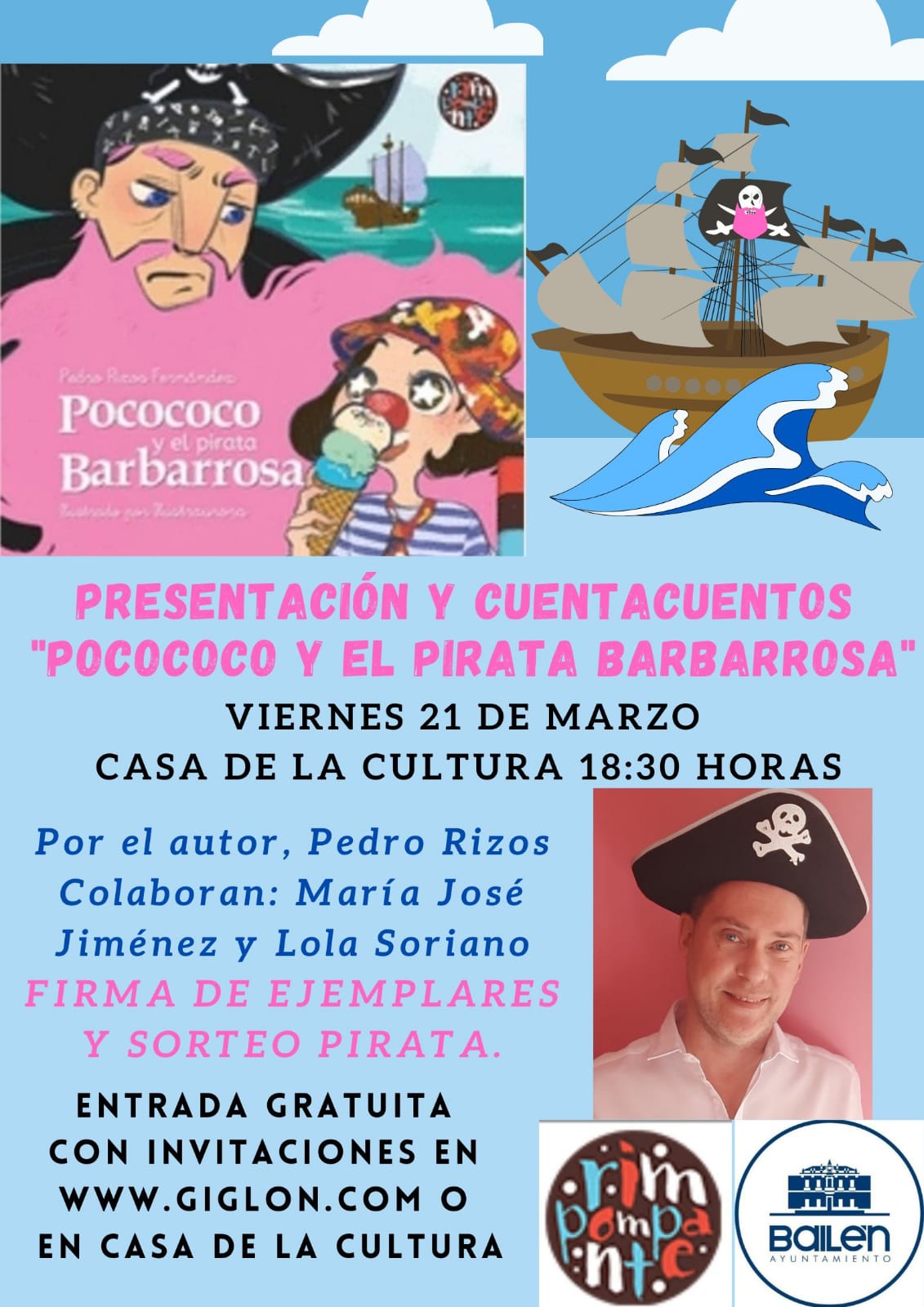 Los más pequeños tienen una nueva cita cultural. Con la colaboración de la Concejalía de Cultura del Ayuntamiento de Bailén, el cuentacuentos infantil ‘Pocococo y el Pirata Barbarrosa’, escrito por Pedro Rizos, apuesta por hacer llegar a los más pequeños los valores de la amistad y la aceptación. La representación, realizada por el propio autor, abrirá sus puertas de forma totalmente gratuita el próximo viernes, 21 de marzo, a las 18.30 horas en la Casa de la Cultura.
