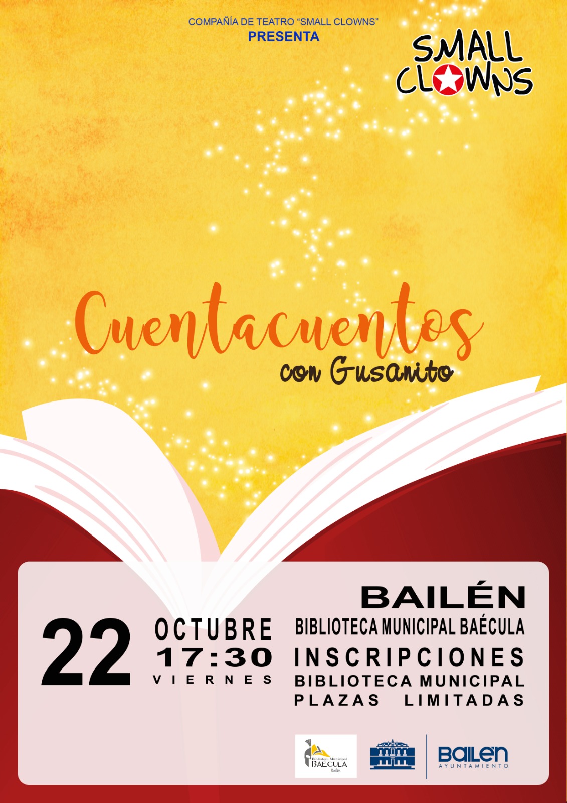 La Biblioteca Municipal Baécula quiere conmemorar el Día de las Bibliotecas, que se celebra el próximo 24 de octubre con la realización de una cuentacuentos para los más pequeños. La Compañía Small Clowns será la encargada de trasladar a los asistentes las aventuras de Gusanito.
