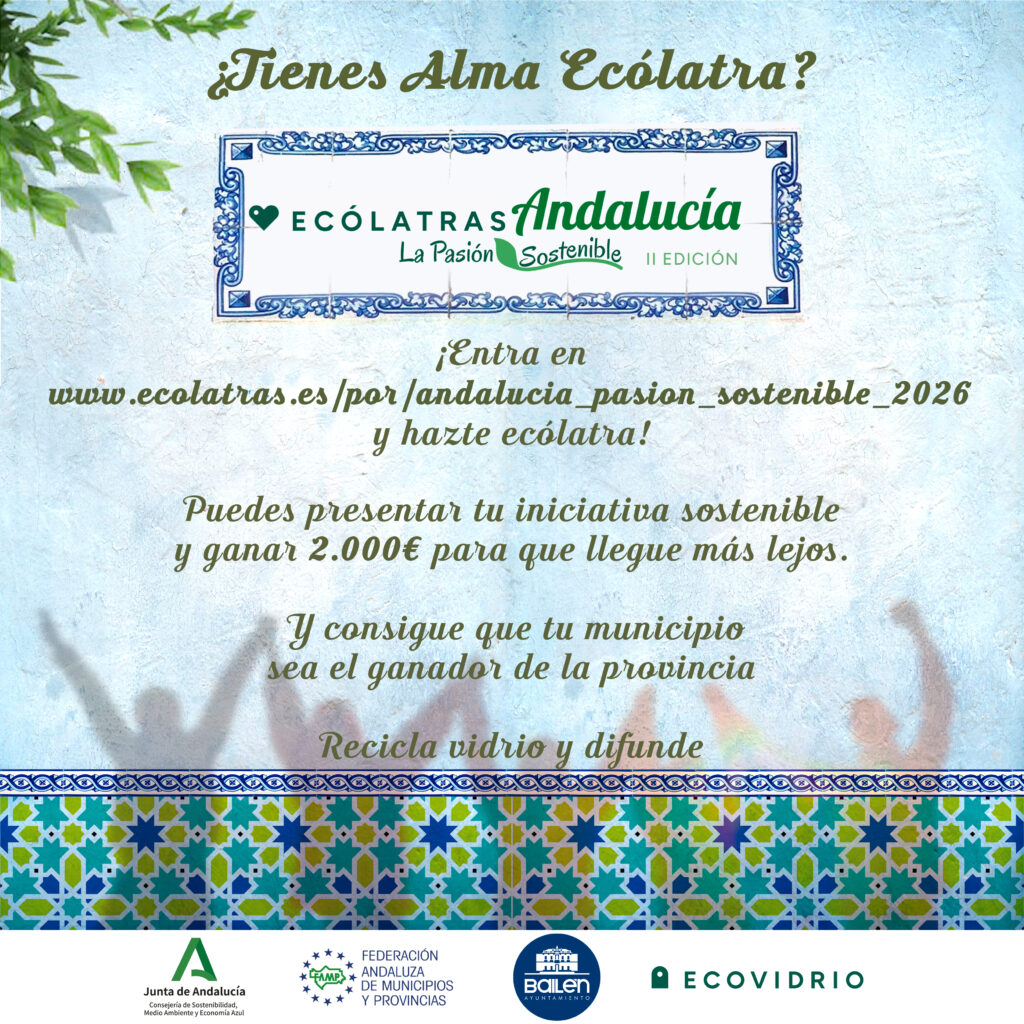 Ecovidrio, el único SCRAP especializado que gestiona sobre el terreno la recogida selectiva y da respuesta a la sostenibilidad de los envases de vidrio desde el origen, en colaboración con la Consejería de Sostenibilidad y Medio Ambiente de la Junta de Andalucía y la Federación Andaluza de Municipios y Provincias (FAMP), ponen en marcha la II Edición de la campaña “Ecólatras”, desde el 4 de marzo al 5 de mayo sacarán la “Pasión Sostenible” de los andaluces. Una iniciativa que se llevará a cabo en 80 localidades de Andalucía, entre ellas Bailén, y que tiene como objetivo buscar y reconocer las mejores iniciativas y proyectos que tengan en común el cuidado del medio ambiente y fomentar el reciclaje de vidrio.