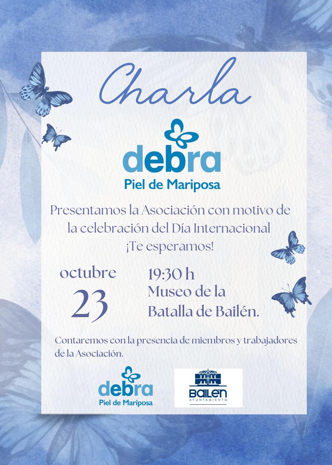 El Ayuntamiento de Bailén, a través de la Concejalía de Salud que dirige Alfonsa García, se suma a la conmemoración del Día Internacional de la Piel de Mariposa y lo hace con una charla que tendrá lugar el próximo 23 de octubre, a las 19.30 horas, en el Museo de la Batalla de Bailén. La Asociación Piel de Mariposa ‘Debra’ será la encargada de realizar esta ponencia para la que contará con miembros y trabajadores de este colectivo con el fin de dar a conocer sus fines y reivindicaciones, así como visibilizar y concienciar sobre esta enfermedad.