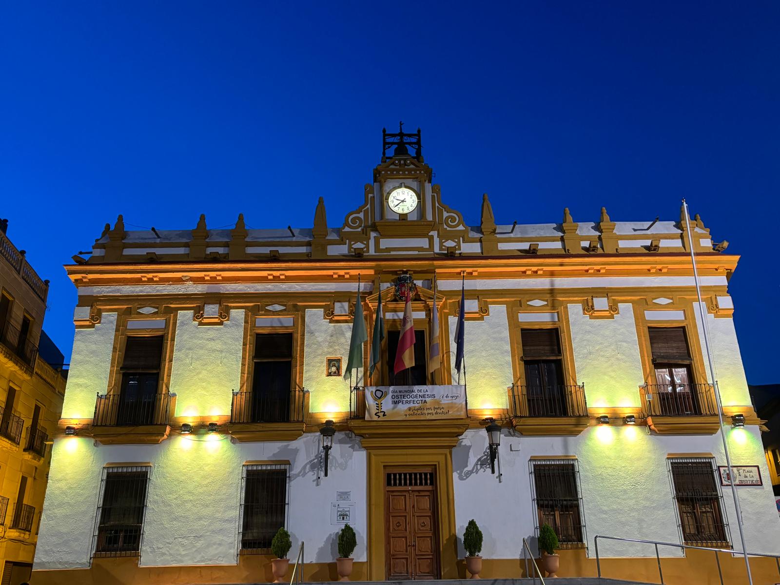 El ayuntamiento de Bailén se suma al Día Mundial de la Osteogénesis Imperfecta, que se conmemora hoy lunes día 6 de mayo, y lo hace iluminando de amarillo la fachada del Consistorio. Se trata del color que utiliza este colectivo para visibilizar la patología, conocida también como la enfermedad de los huesos de cristal.