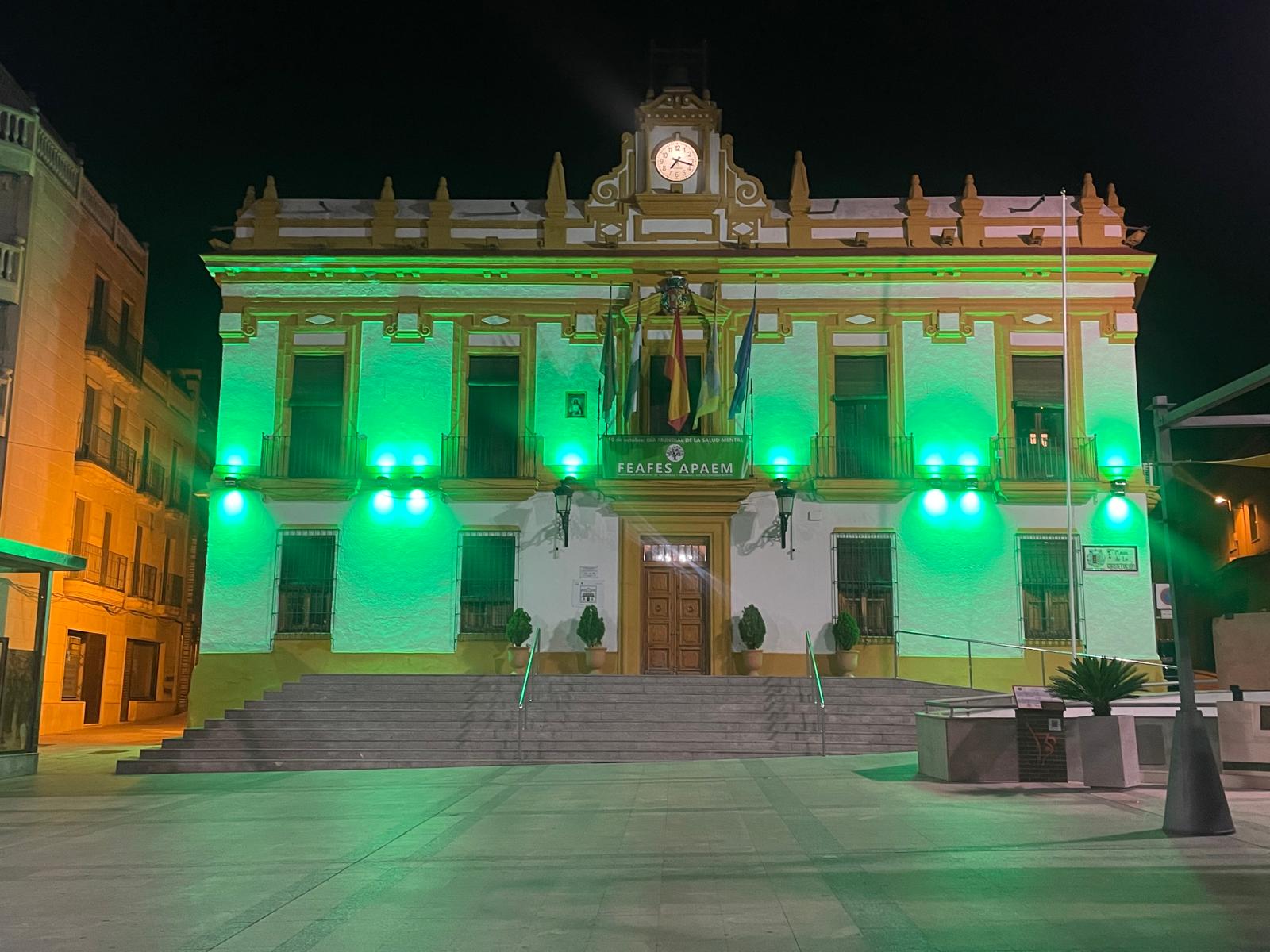Hoy, 10 de octubre, se celebra el Día Mundial de la Salud Mental con el objetivo de crear concienciación en todo el mundo en torno a este asunto, movilizar esfuerzos y apoyar a quienes sufren algún tipo de enfermedad mental. El Ayuntamiento de Bailén se suma a esta causa, motivo por el cual su fachada se iluminará de verde y luce una pancarta de FEAFES Apaem, mostrando así su reconocimiento a la labor que desarrolla la Asociación Provincial de Allegados y Personas con Enfermedad Mental.