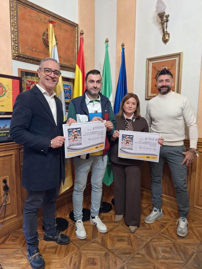 El alcalde de Bailén, Luis Mariano Camacho, y el concejal de Comercio, Manuel Rodríguez, han hecho entrega hoy del segundo (1.500 euros) y tercer premio (500 euros) de la Campaña de Comercio de Navidad ‘Los Lolitos de la Suerte’, una iniciativa impulsada por el Ayuntamiento con el objetivo de fomentar las compras en el comercio local y de proximidad durante las pasadas fiestas navideñas.