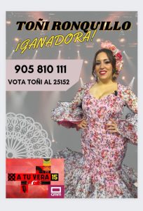 Proyección en la pantalla del Salón de Actos de la Casa de la Cultura de la Final del programa concurso «A tu vera», de la Televisión de Castilla – La Mancha, en la que la coplera bailenense Toñi Ronquillo luchará por conseguir el título.