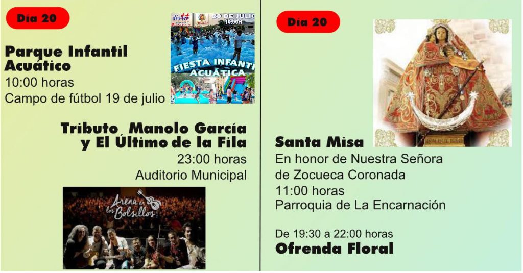 « Todos los Eventos Este evento ha pasado. Actuación Fiestas 20-07-2021 « Actuación Fiestas Actuación Fiestas » Añadir al calendario Google Calendar iCalendar Outlook 365 Outlook Live Detalles Fecha: 20-07-2021 Categoría del Evento: Espectaculo