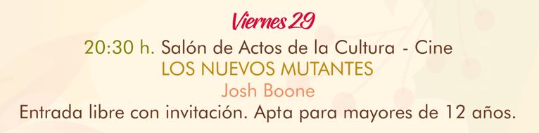 « Todos los Eventos Este evento ha pasado. Cine Los Nuevos Mutantes 29-10-2021 20:30 « Taller Rollos Terroríficos Jornadas sobre Biodiversidad » Añadir al calendario Google Calendar iCalendar Outlook 365 Outlook Live Detalles Fecha: 29-10-2021 Hora: 20:30 Categoría del Evento: Espectaculo Local Casa de la Cultura de Bailén Organizador Ayuntamiento de Bailén Teléfono 953678540 Correo electrónico informacion@ayto-bailen.com Ver la web del Organizador