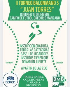 « Todos los Eventos Este evento ha pasado. II Torneo de Balonmano «Juan Torres» 15-12-2024 Gratuito « Voleibol Liga de Fútbol Sala de Bailén Temporada 2024/25 Horarios 5ª Jornada » Añadir al calendario Google Calendar iCalendar Outlook 365 Outlook Live Detalles Fecha: 15-12-2024 Precio: Gratuito Categoría del Evento: Deportes Organizador Delegación de Deportes Teléfono 953678042 Correo electrónico deportes@ayto-bailen.com Ver la web del Organizador
