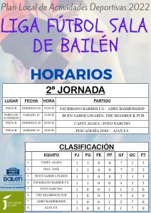 LIGA DE FÚTBOL SALA DE BAILÉN HORARIOS: 2ª JORNADA