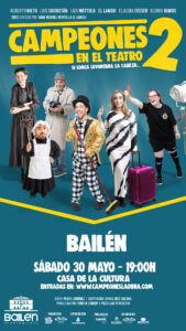 « Todos los Eventos Representación teatral – «Campeones 2 en el teatro». mayo 30 19:00 - 21:00 « Representación teatral – «Soledad» Entradas en : CAMPEONES LA OBRA | CAMPEONES 2 Añadir al calendario Google Calendar iCalendar Outlook 365 Outlook Live Detalles Fecha: mayo 30 Hora: 19:00 - 21:00 Recinto Casa de la Cultura de Bailén Organizador Ayuntamiento de Bailén Teléfono 953678540 Correo electrónico informacion@ayto-bailen.com Ver el sitio web del Organizador