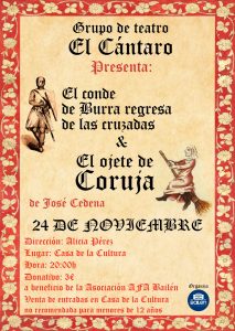 Grupo de Teatro «El Cántaro» presenta dos obras de José Cedena: «El conde de Burra regresa de las cruzadas» y «El ojete de Coruja».