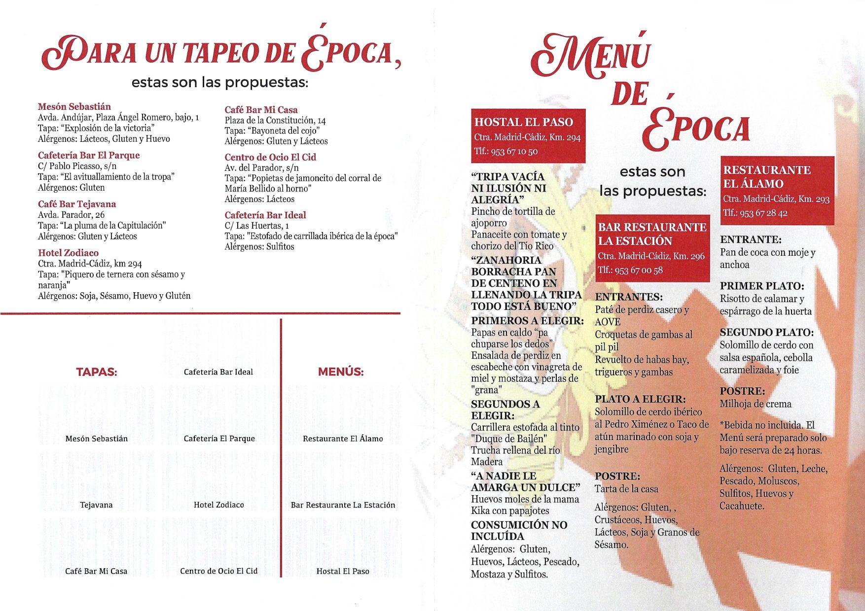 Hostal El Paso, Bar Restaurante La Estación y Restaurante El Álamo.