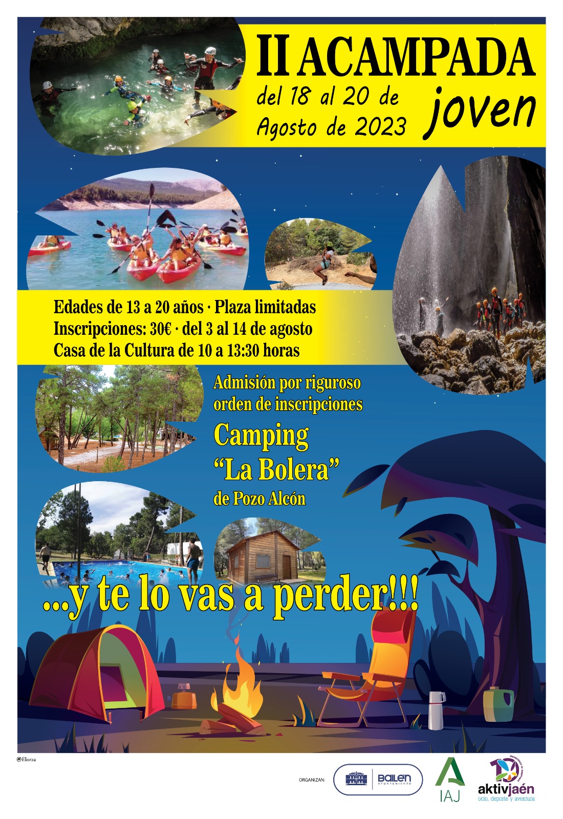 El 3 de Agosto se abrirá el plazo de inscripciones de la acampada que se va a llevar a cabo desde el día 18 al 20 de Agosto en el camping “La bolera “ de Pozo Alcón.