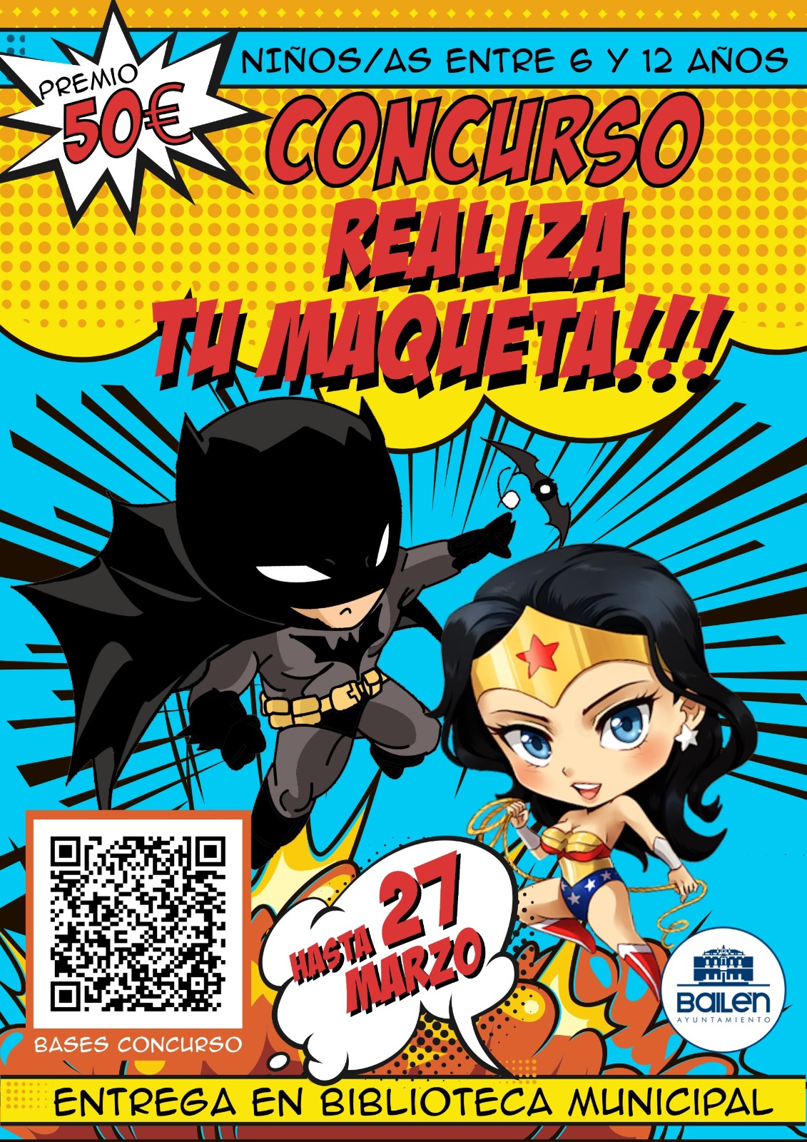 Con motivo del Día Internacional del Libro Infantil y Juvenil, la Concejalía de Cultura a cargo de María Teresa Risueño, junto a la Biblioteca Municipal Baécula, propone un concurso de maquetas cuyo tema principal girará en torno a los grandes héroes de Cómic. Las maquetas deben presentarse en la Biblioteca Municipal antes del 27 de marzo durante las horas de atención al público.
