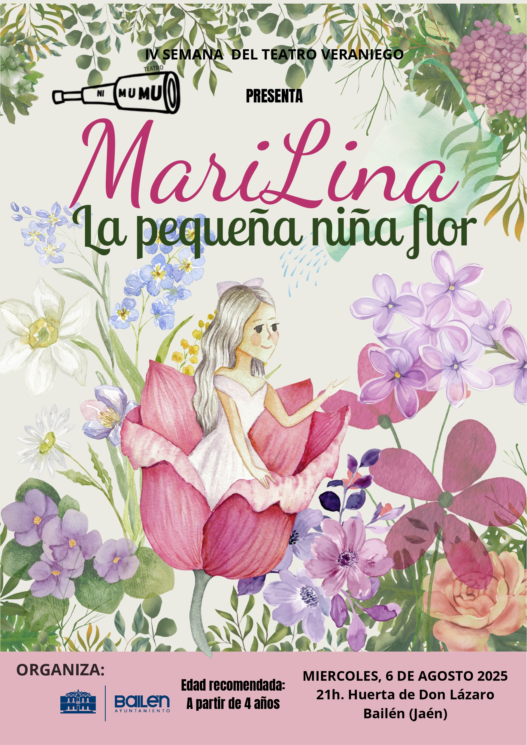 Hoy 6 de agosto a las 21:00h, tendrá lugar la representación de ‘Marilina la niña flor’, a cargo de la Compañía ‘Nimumu Teatro’, en la Huerta de San Lázaro.