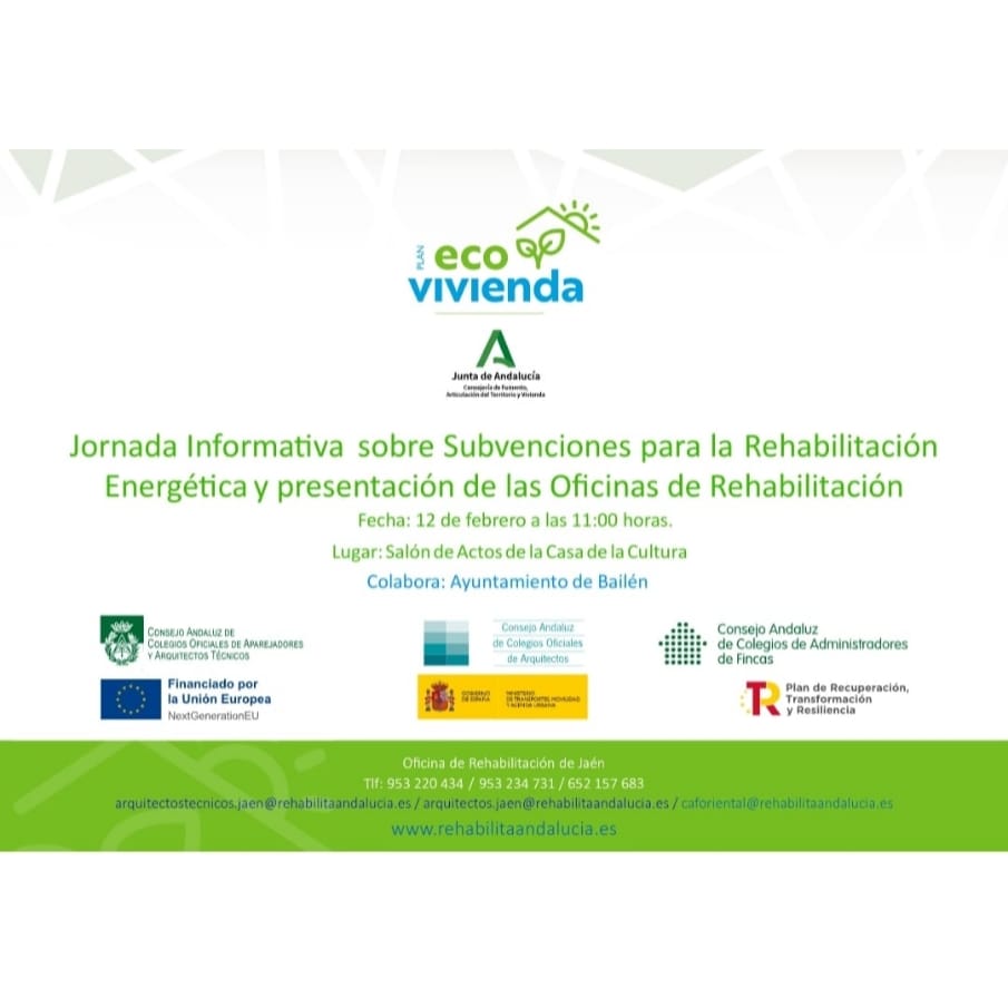 Jornada Informativa sobre Subvenciones para la Rehabilitación Energética y Presentación de las Oficinas de Rehabilitación el día 12 de febrero a las 11:00 en el Salón de Actos de la Casa de la Cultura.