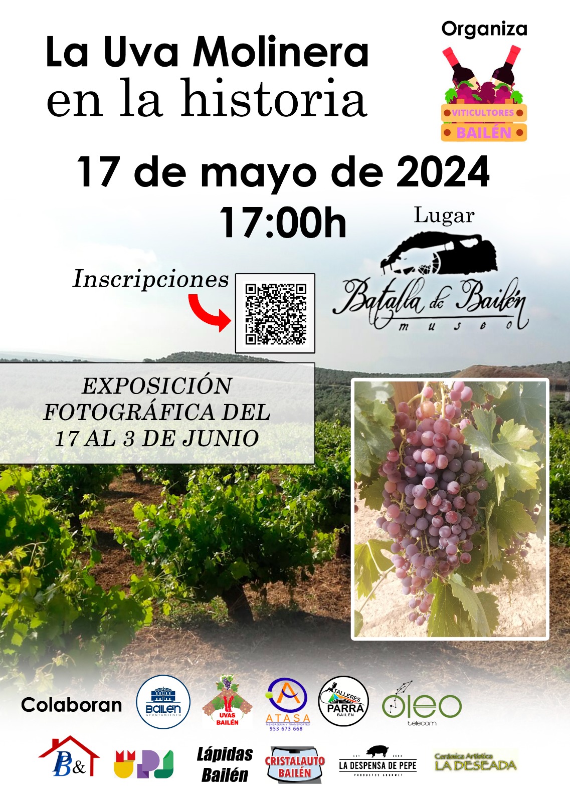 Se trata de una iniciativa impulsada por la Asociación de Viticultores de Bailén y que se inicia el próximo día 17 de mayo con una exposición fotográfica sobre diferentes escenarios de este fruto a lo largo de la historia. Esta muestra se extiende hasta el día 3 de junio en el Museo de la Batalla de Bailén. Además, el día 17 de mayo a alas 17h, el reconocido enólogo Miguel Lara ofrecerá una conferencia en torno a la variedad del vino de Bailén, su presente y su futuro. Estarán también presentes en esta jornada Antonio Rubio, especialista en el sector y que se encuentra inmerso en un proyecto de recuperación de variedades autóctonas en Almería, además de José Eduardo Segura, enólogo jiennense.