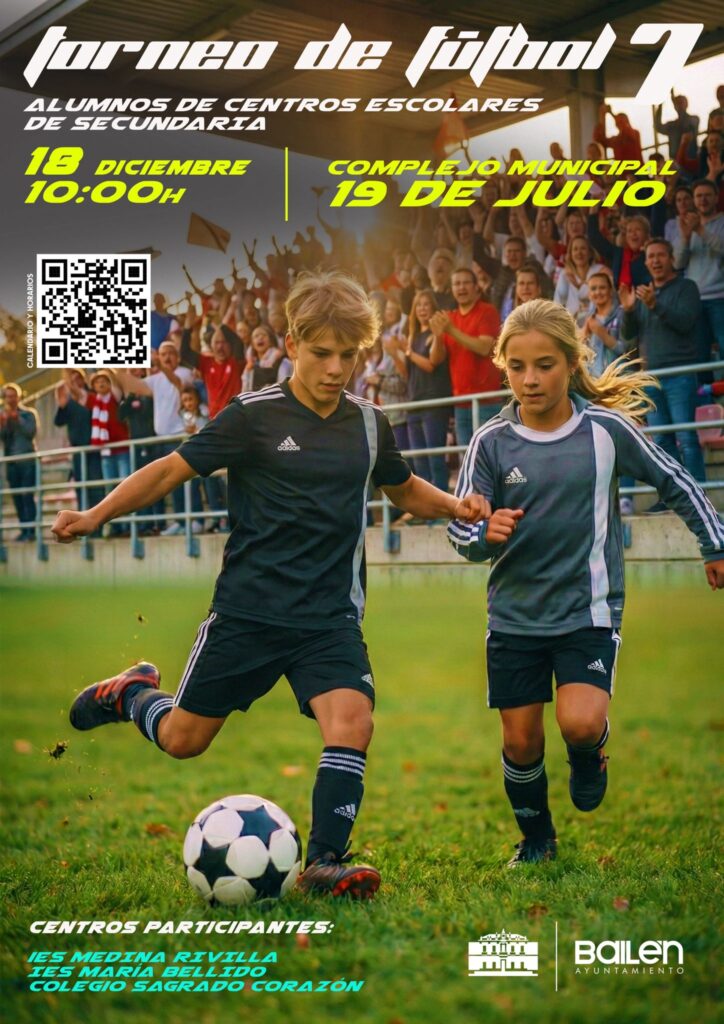 El Ayuntamiento de Bailén, a través de la Concejalía de Deportes, ha organizado un Torneo de Fútbol 7 dirigido al alumnado de centros escolares de Educación Secundaria, con el objetivo, tal y como ha destacado el edil, Manuel Rodríguez, de “fomentar la práctica deportiva, los hábitos de vida saludables y los valores del deporte entre los más jóvenes”.