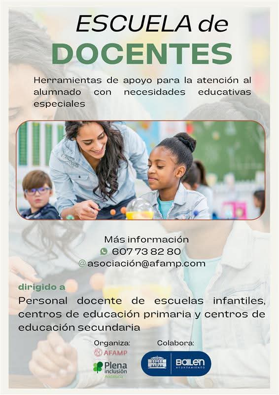 En la Escuela de Docentes, AFAMP llevará a cabo formaciones dirigidas específicamente al personal educativo de escuelas infantiles, centros de educación primaria y centros de educación secundaria de Bailén.
