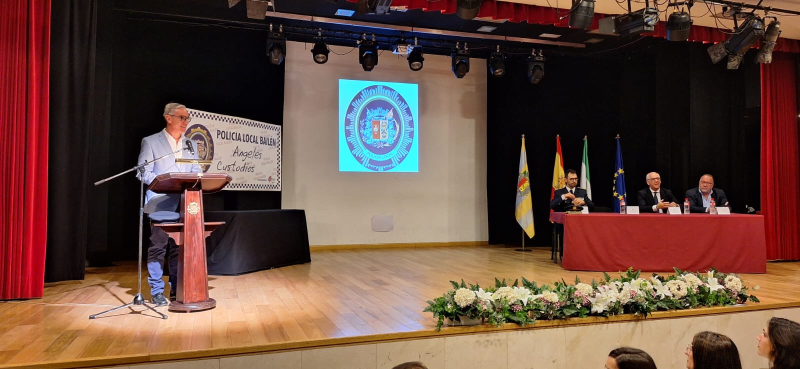 La Policía Local de Bailén desde la concejalía de Seguridad Ciudadana, celebró ayer, en la Casa de la Cultura el acto de conmemoración de su Patrón “Los Santos Ángeles Custodios”, que ha estado presidido por el Delegado de la Junta de Andalucía en Jaén, Jesús Estrella, el Alcalde de Bailén, Luis Mariano Camacho, el concejal de Seguridad Ciudadana, Bartolomé Morales y Jefe de la Policía Local, Juan Pedro García.