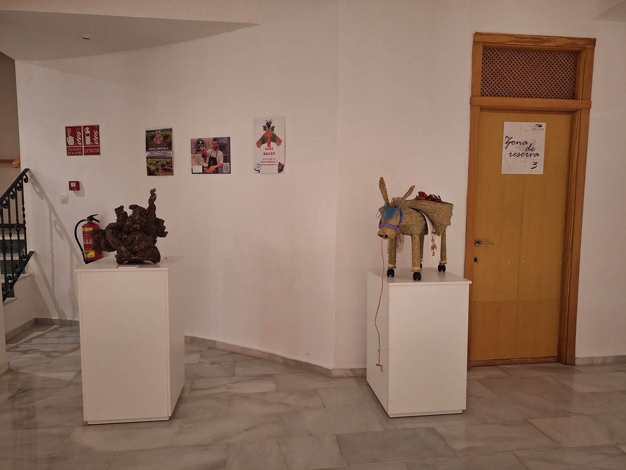 La exposición, bajo el título “La uva molinera en la historia”, contempla 23 fotos, un óleo sobre lienzo de la cooperativa Santa Gertrúdix, un burro fabricado con esparto, 28 botellas de vino de Manuel Álvarez, dos parras de vid y otros elementos de la Asociación de Viticultores de Bailén.