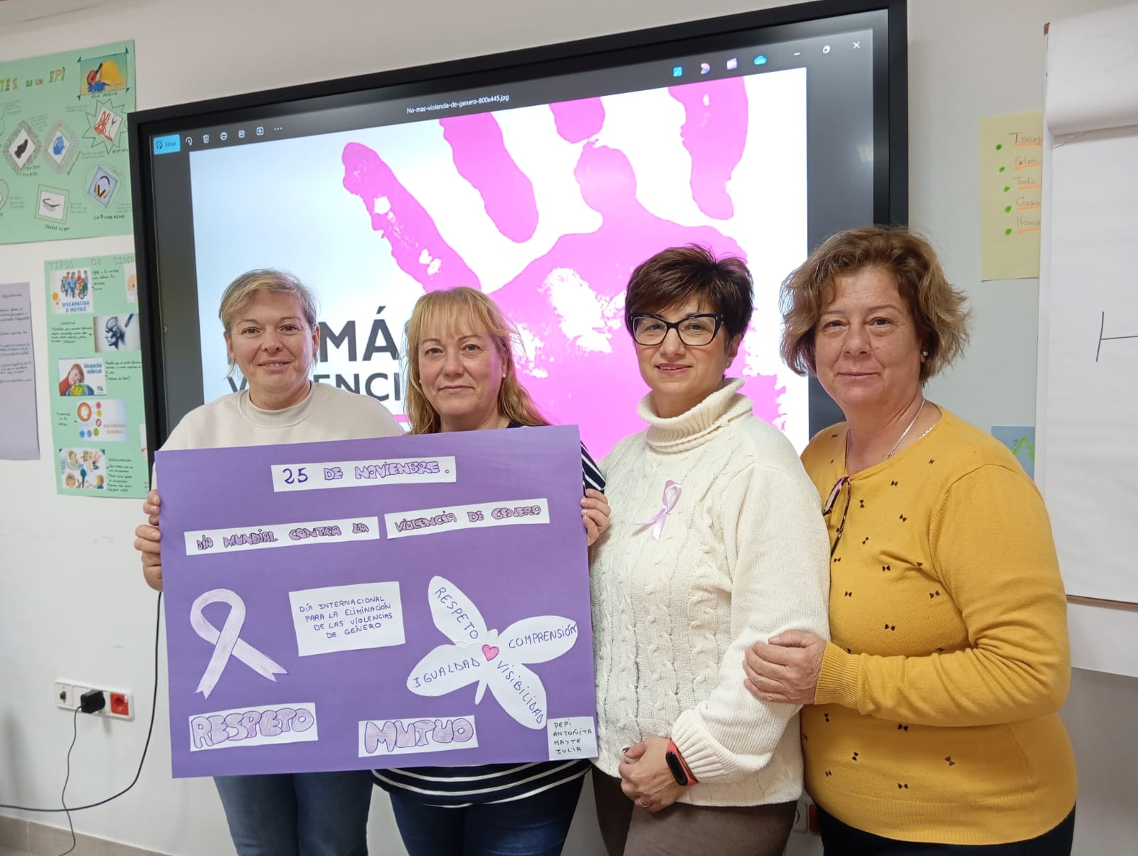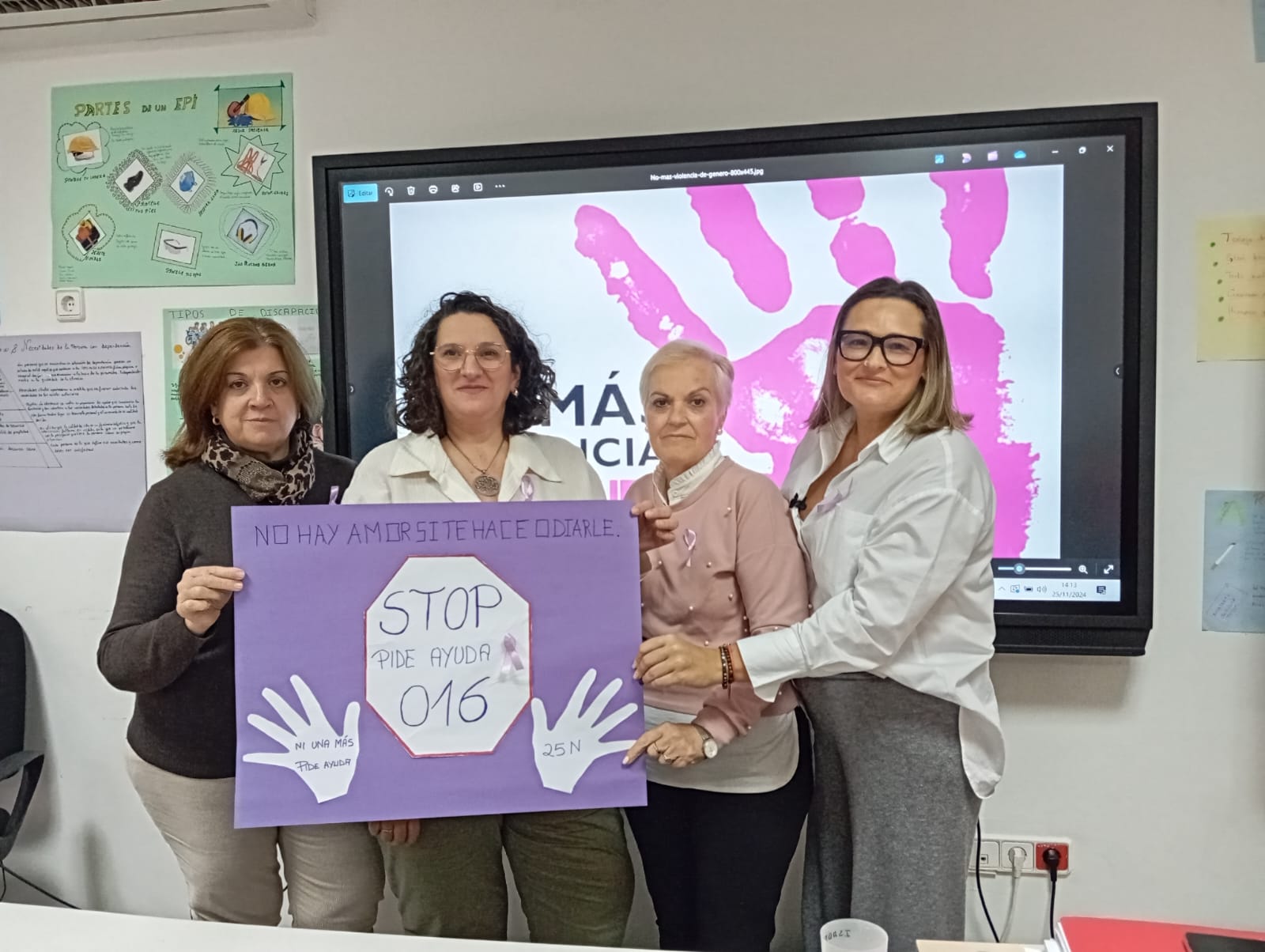 Las alumnas del Programa de Empleo y Formación Sociosanitario, dependiente de la Concejalía de Empleo y Formación que gestiona María Torres, junto a la directora y personal de ejecución han realizado una activad especial en el marco del 25-N, Día Internacional de la Lucha Contra la Violencia hacia las Mujeres.