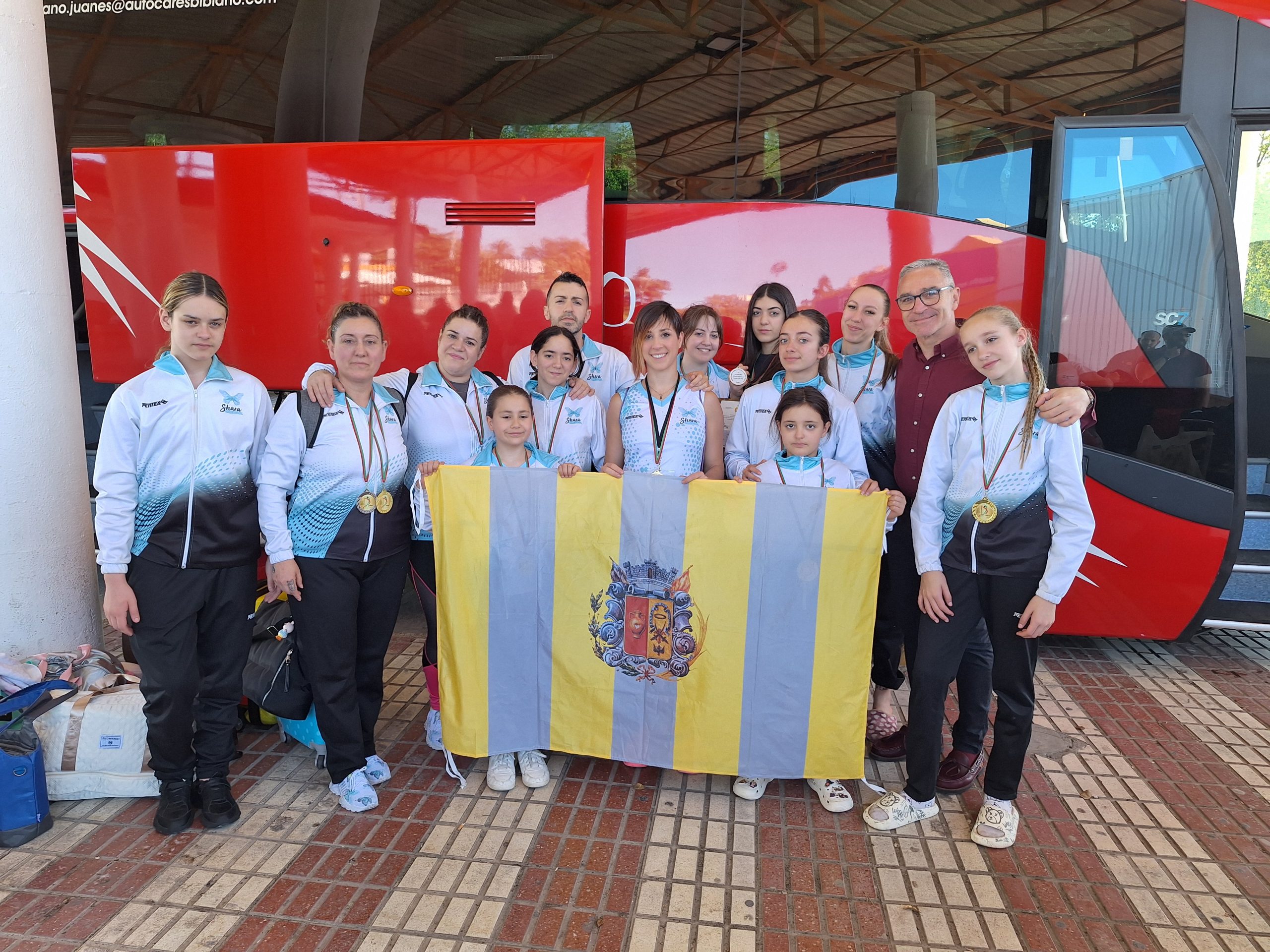 De este modo, las gimnastas María Ortega, Ángela de la Torre, Yaiza Rodríguez, Sara López, Elsa Medino, Sara Castro, Rosa María López, Leonor María Pérez, Sofía López, Valeria García, Manoli Romero, Macarena Cantero y Rocío García, pudieron saborear la victoria en el país vecino.