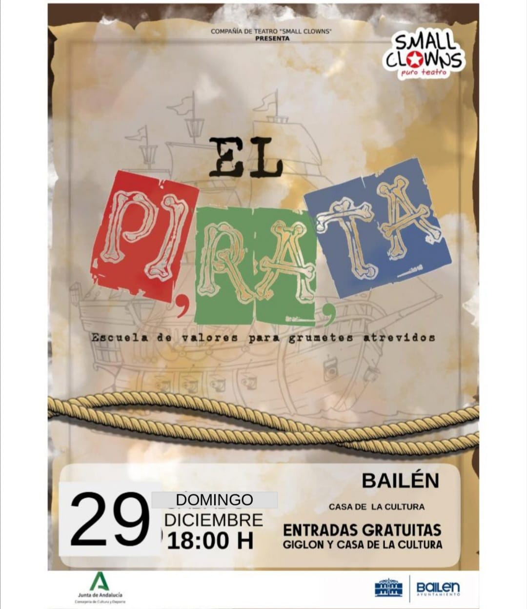 La concejal de Cultura, María Teresa Risueño, ha presentado un nuevo espectáculo infantil que se celebrará el próximo domingo, 29 de diciembre, a las 18.00 horas, en el Salón de Actos de la Casa de la Cultura. Se trata de la obra ‘El Pirata. Escuela de valores para grumetes atrevidos’, a cargo de la compañía Small Clowns.