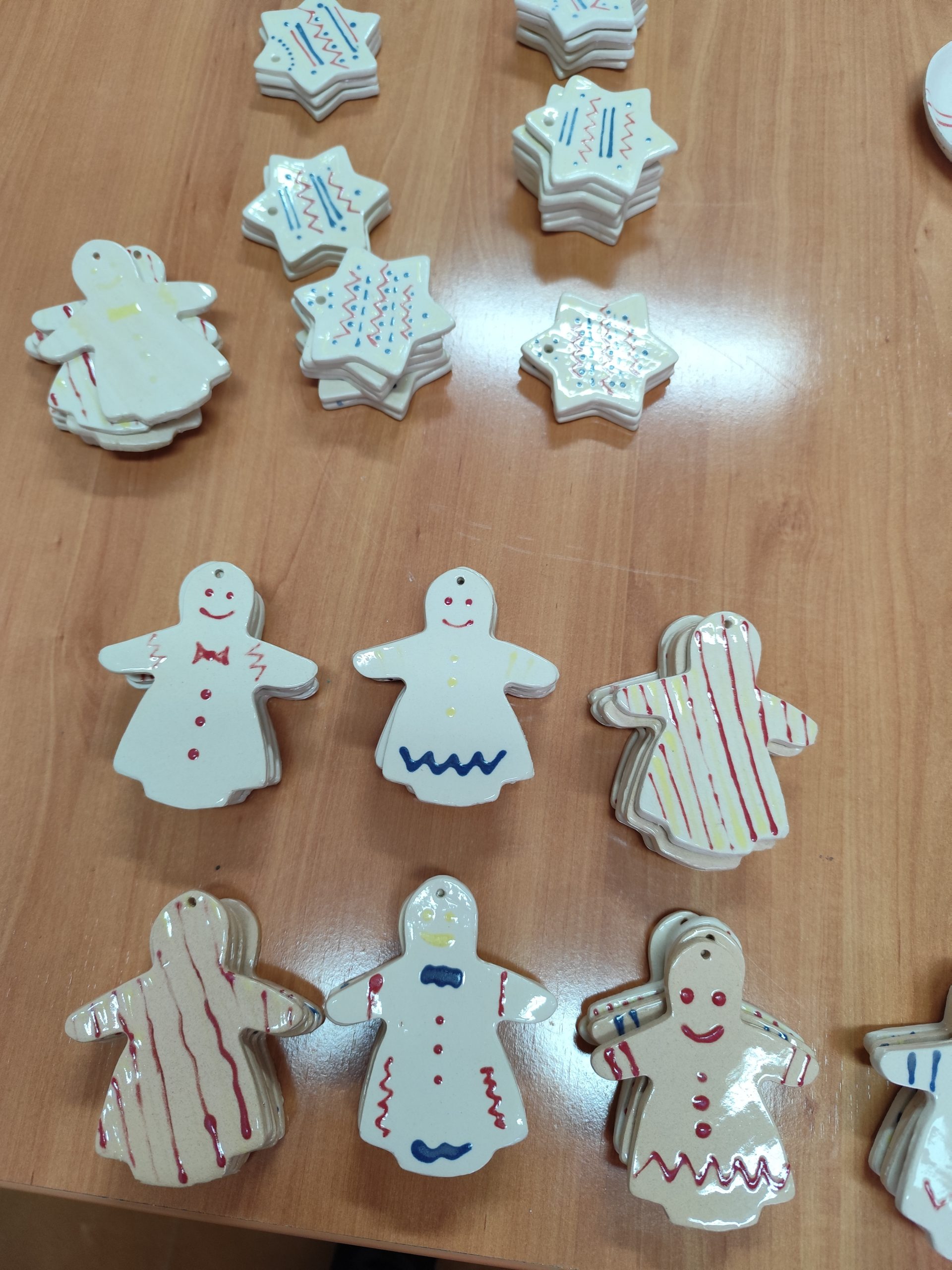 Bastones de Navidad, galletas de jengibre, bolas y estrellas son algunas de las piezas cerámicas que los alumnos del Programa de Empleo y Formación de Artesanía de Bailén han elaborado, embalado y entregado a los diversos establecimientos adheridos a la Campaña de Comercio.