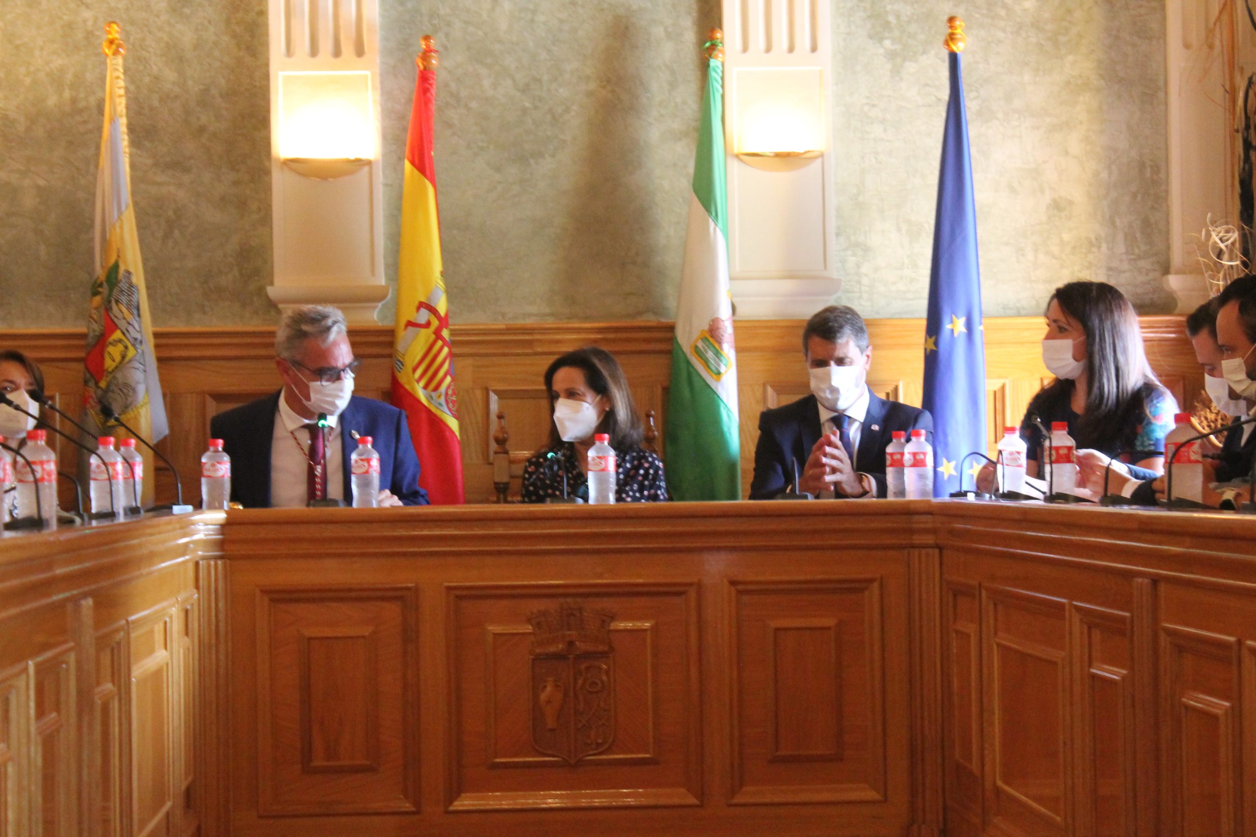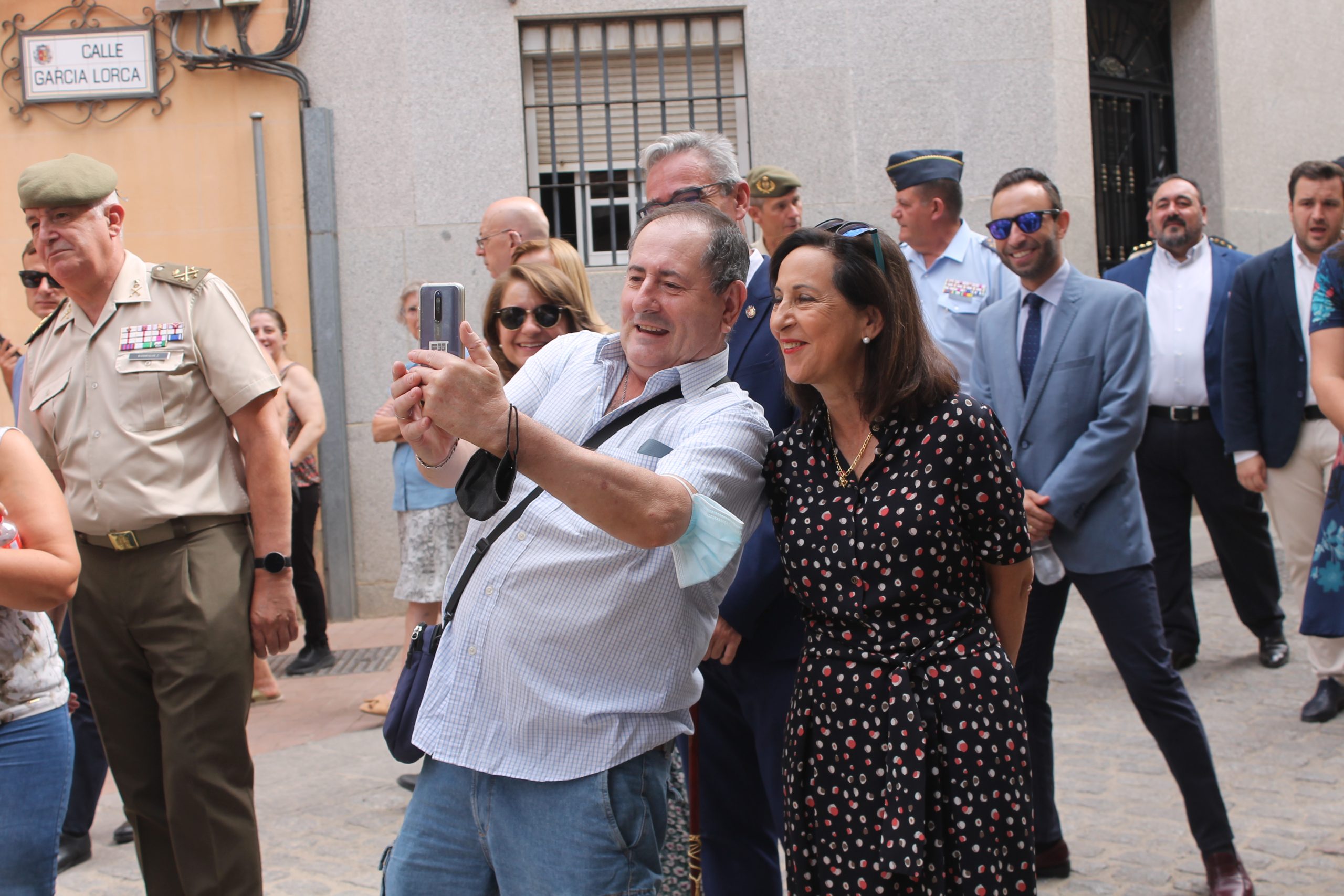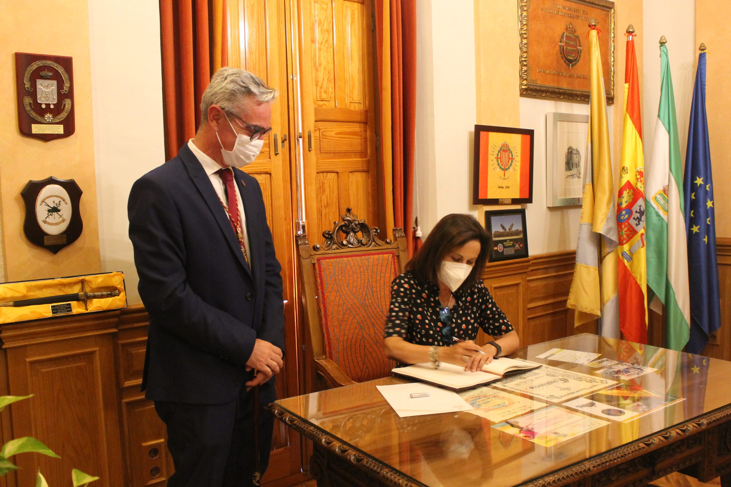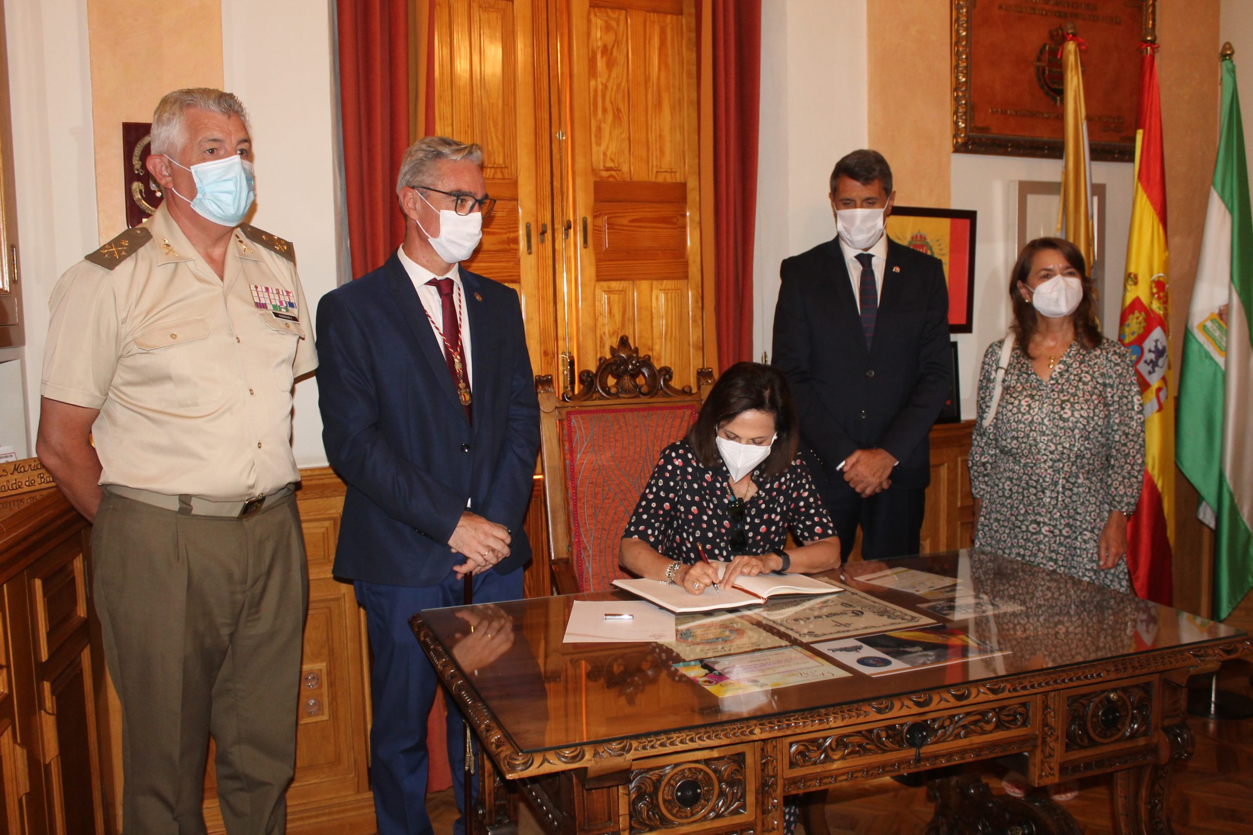 La ministra de Defensa, Margarita Robles, se ha trasladado hoy a la ciudad de Bailén, en Jaén, para agradecer al alcalde y a toda la corporación municipal el excelente trato institucional del Ayuntamiento y las continuas muestras de afecto, respeto y cariño de la población civil hacia las Fuerzas Armadas.