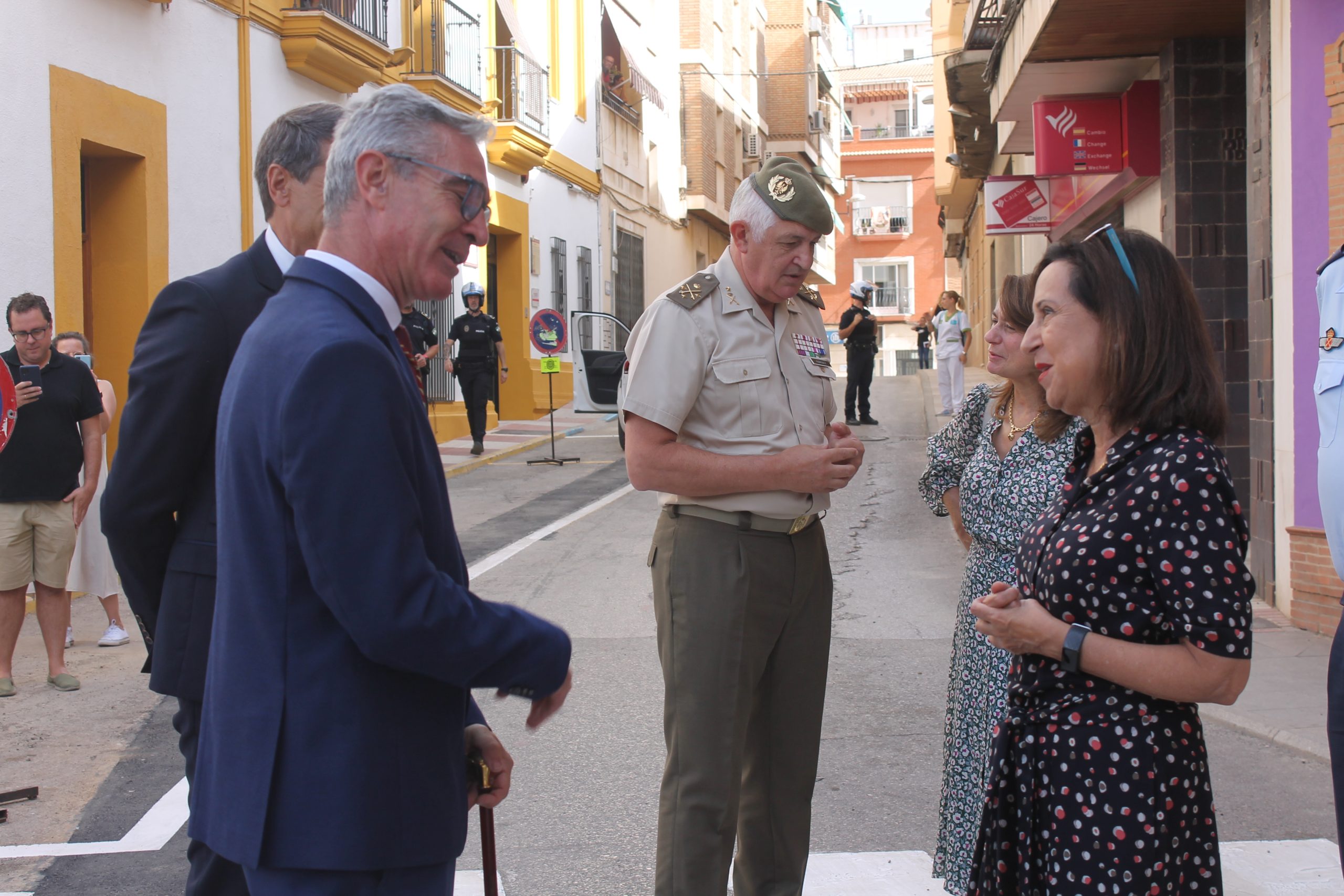 La subsecretaria de Defensa, Adoración Mateos, el delegado del Gobierno en Andalucía, Pedro Fernández Peñalver y el teniente general José Rodríguez García, jefe de la Fuerza Terrestre del Ejército de Tierra (FUTER), entre otras autoridades, han acompañado a Robles durante la visita.