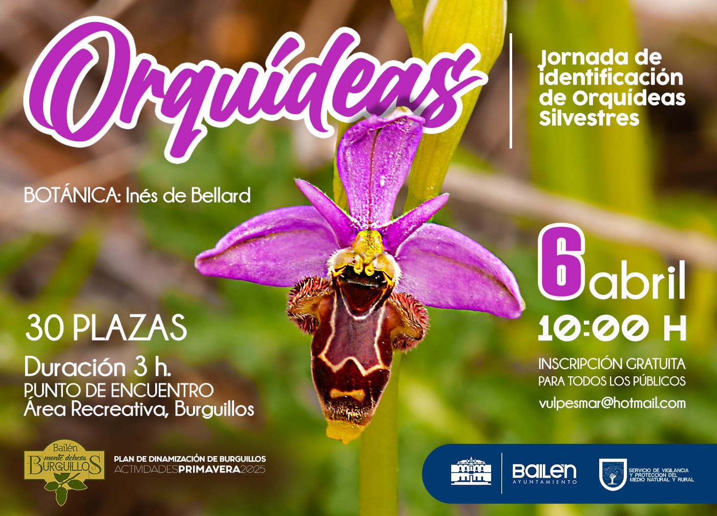 La Concejalía de Medio Ambiente, gestionada por María Teresa Risueño, con la colaboración del Servicio Municipal de Guardería Rural, ha organizado una nueva actividad para los amantes de la naturaleza. Se trata e la Jornada de Identificación de Orquídeas Silvestres que tendrá lugar el próximo 6 de abril en Burguillos y que, tal y como señala la edil responsable, “nos mostrará las distintas especies de orquídeas de nuestro paraje natural, que tiene un gran potencial en este grupo vegetal y cuenta con doce especies descritas hasta el momento; también descubriremos curiosidades sobre otras plantas en flor y sus hábitats”.