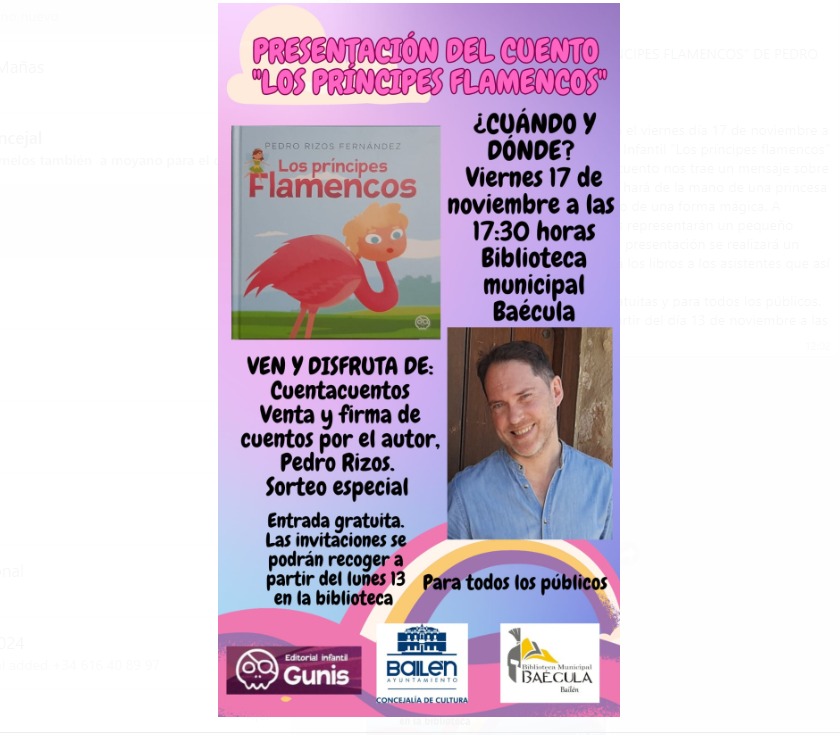 presentación del libro Infantil “Los príncipes flamencos”, del autor bailenense Pedro Rizos.