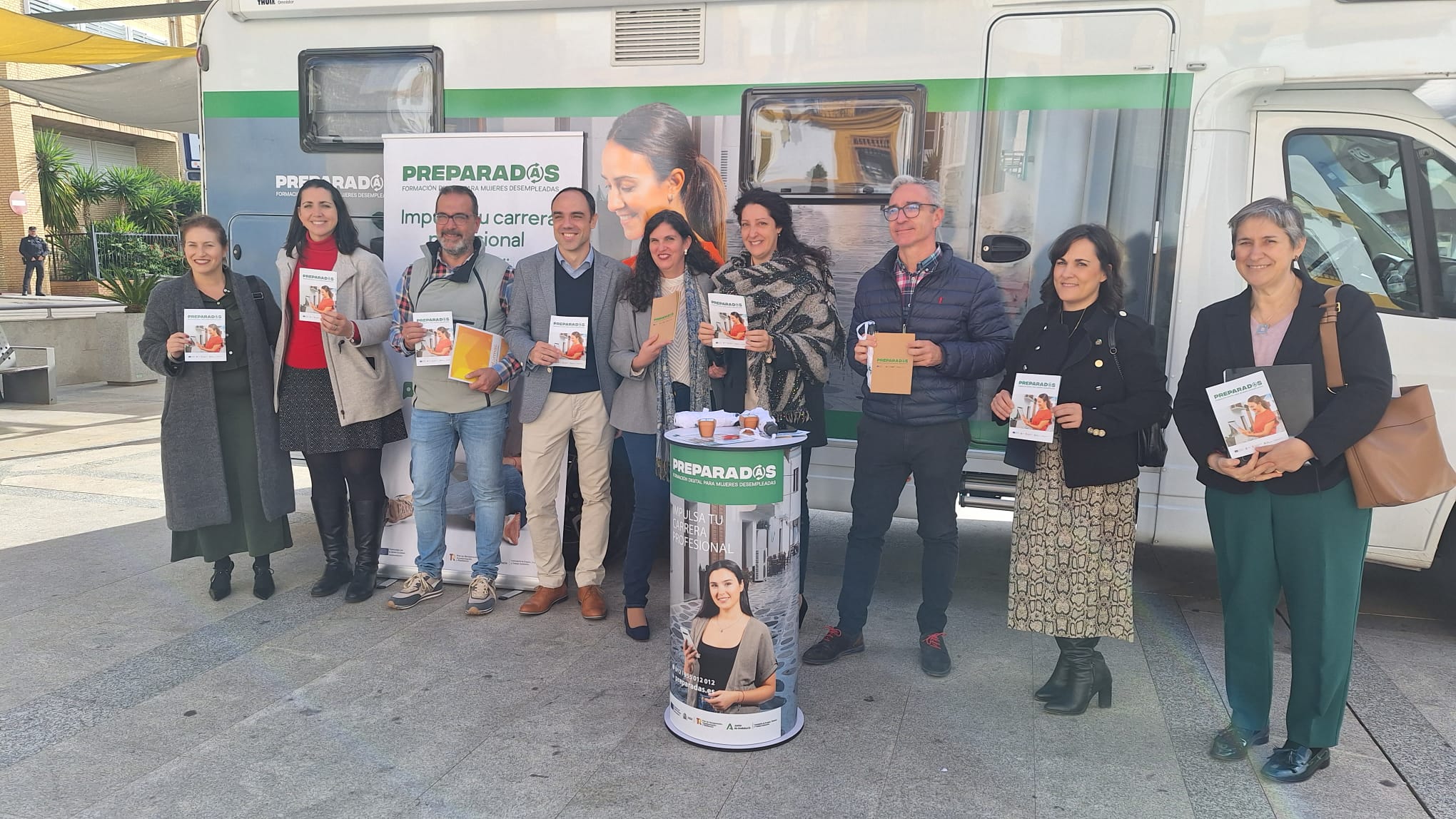 Posteriormente se han trasladado a la Plaza de la Constitución, donde se ha instalado una caravana informativa, como vehículo de difusión, para animar a las mujeres rurales a aprovechar esta oportunidad como vía para avanzar en su desarrollo laboral y personal.