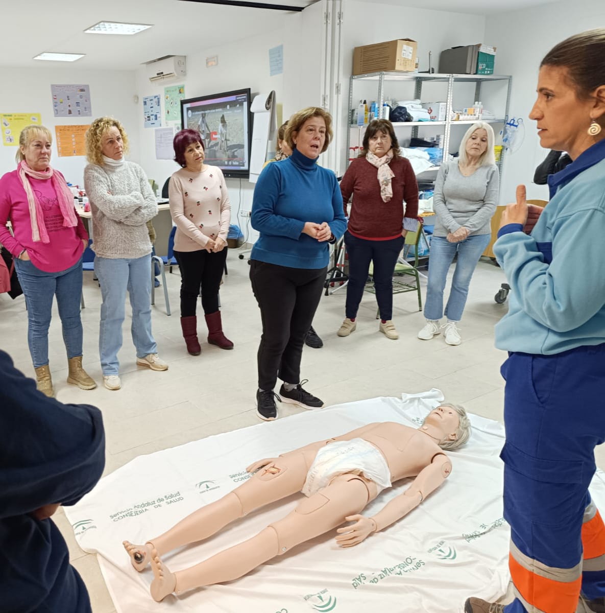 Así, las alumnas trabajadoras de atención sociosanitaria “continúan enriqueciéndose” en formación, esta vez de la mano de las enfermeras del Centro de Salud, Carmen López, Maribel Soler y Tatiana Amate. Durante la charla, han tratado temas relacionados con el cuidado de la piel y la reanimación cardiopulmonar.
