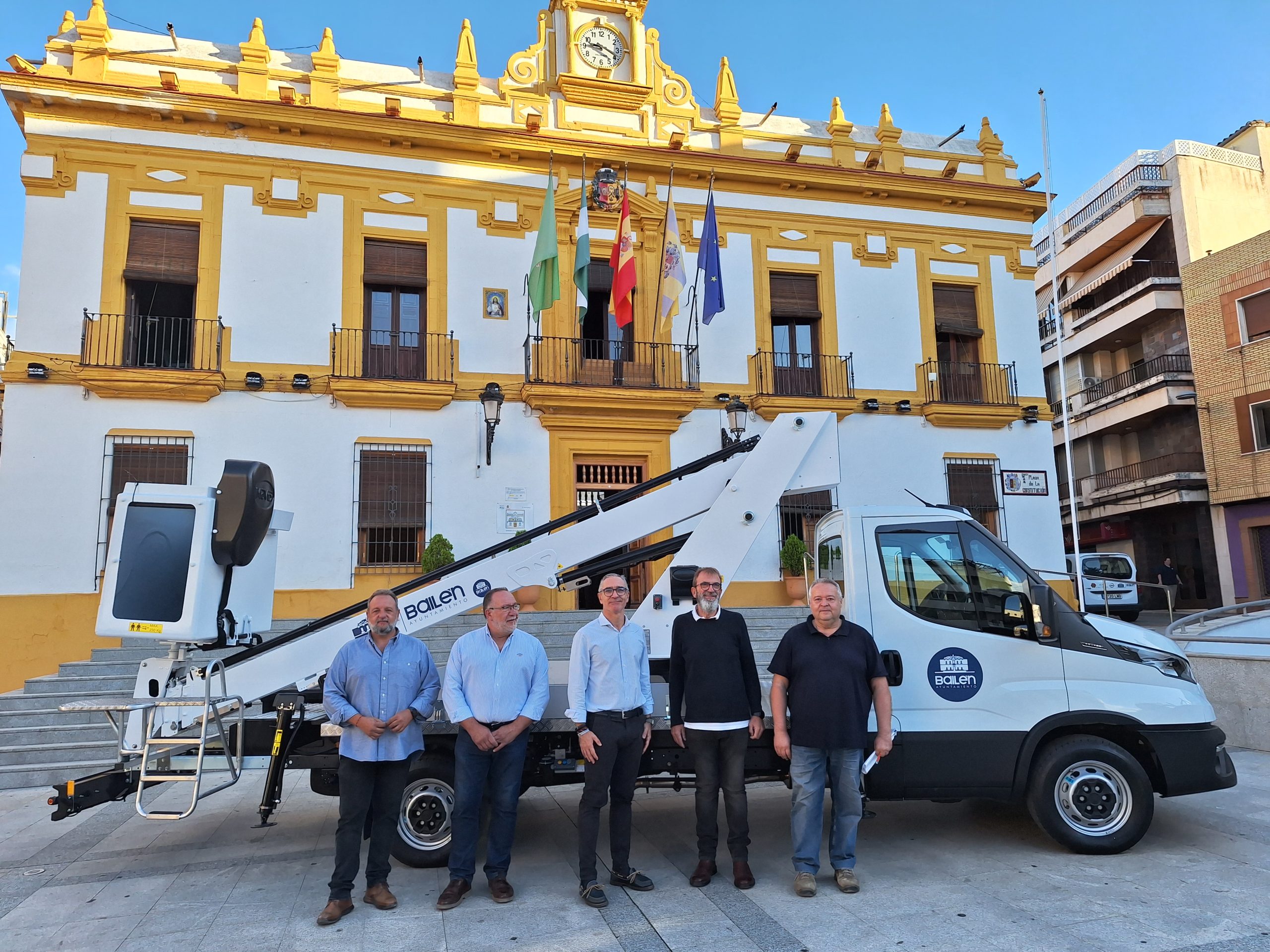 En el marco del Plan Provincial de Cooperación Municipal de 2023 del Área de Infraestructuras Municipales de la Diputación Provincial de Jaén, el Consistorio bailenense solicitó una subvención para la inversión en la compra de un Camión Cesta IVECO MOVEX 35S16H que cuenta con plataforma aérea NICEX; pluma telescópica en tres secciones con un tramo fijo y dos telescópicos de salida sincronizada y fabricada en acero de gran resistencia.