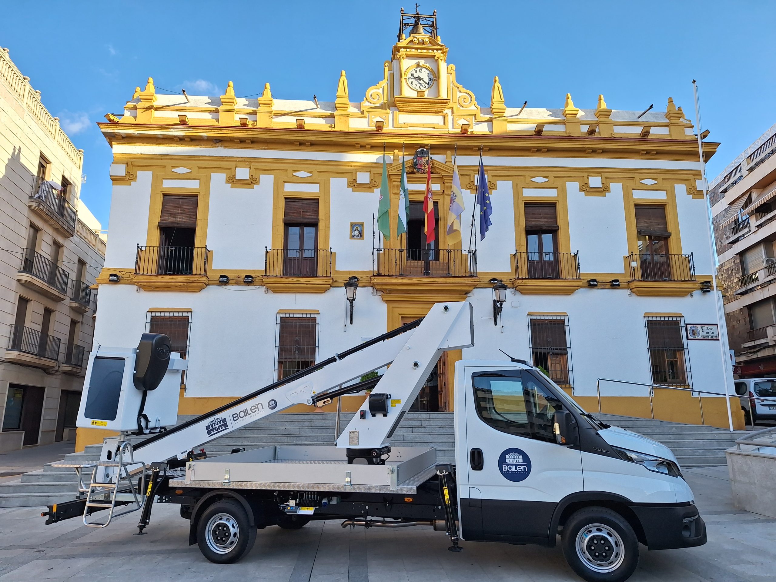 La adquisición del nuevo vehículo responde a la necesidad de realizar trabajos en altura para el mantenimiento del alumbrado público, jardinería e instalación de toldos, entre otros. “Solucionamos así una demanda de este Ayuntamiento que nos permitirá prestar mejores servicios a los ciudadanos”, ha manifestado el concejal del ramo, Bartolomé Morales.