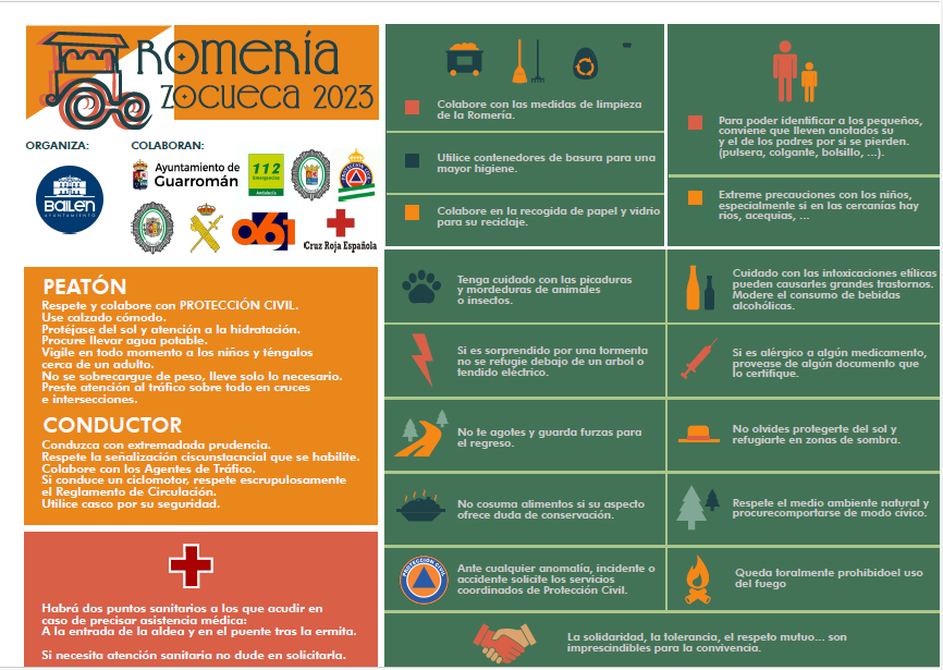 Pueden ver las recomendaciones para mantener la seguridad y la convivencia durante la Romeria de Zocueca del 24 de septiembre, y el horario del Zocueca-bus, en las imágenes. Se recuerda que queda totalmente prohibido el uso del fuego.